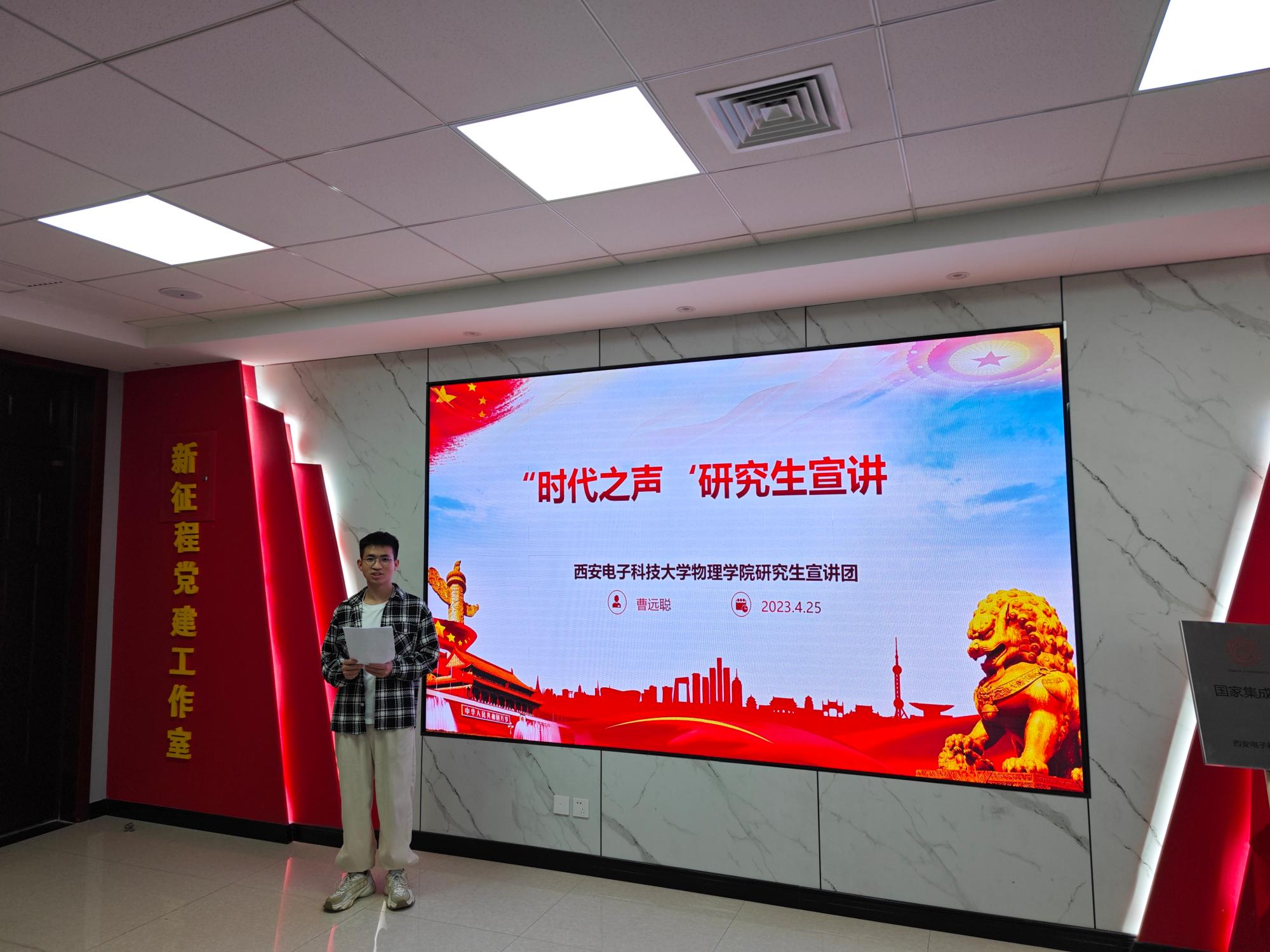 本次“时代之声”研究生宣讲活动是公司开展学习贯彻习近平新时代中国特色社会主义思想主题教育的重要举措之一,通过将创新理论学习融入日常思政教育活动中,让同学们听得懂、能领会、善运用,激励研究生以西电人昂扬向上的精神风貌和奋发有为的实际行动,踔厉奋发,锐意进取,争做有理想、敢担当、能吃苦、肯奋斗的新时代好青年。