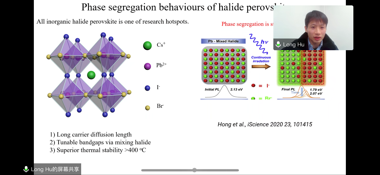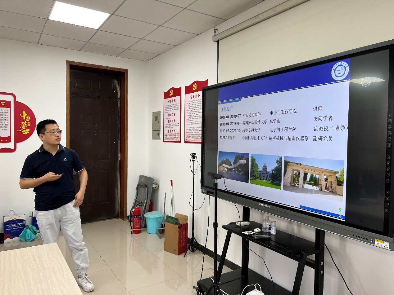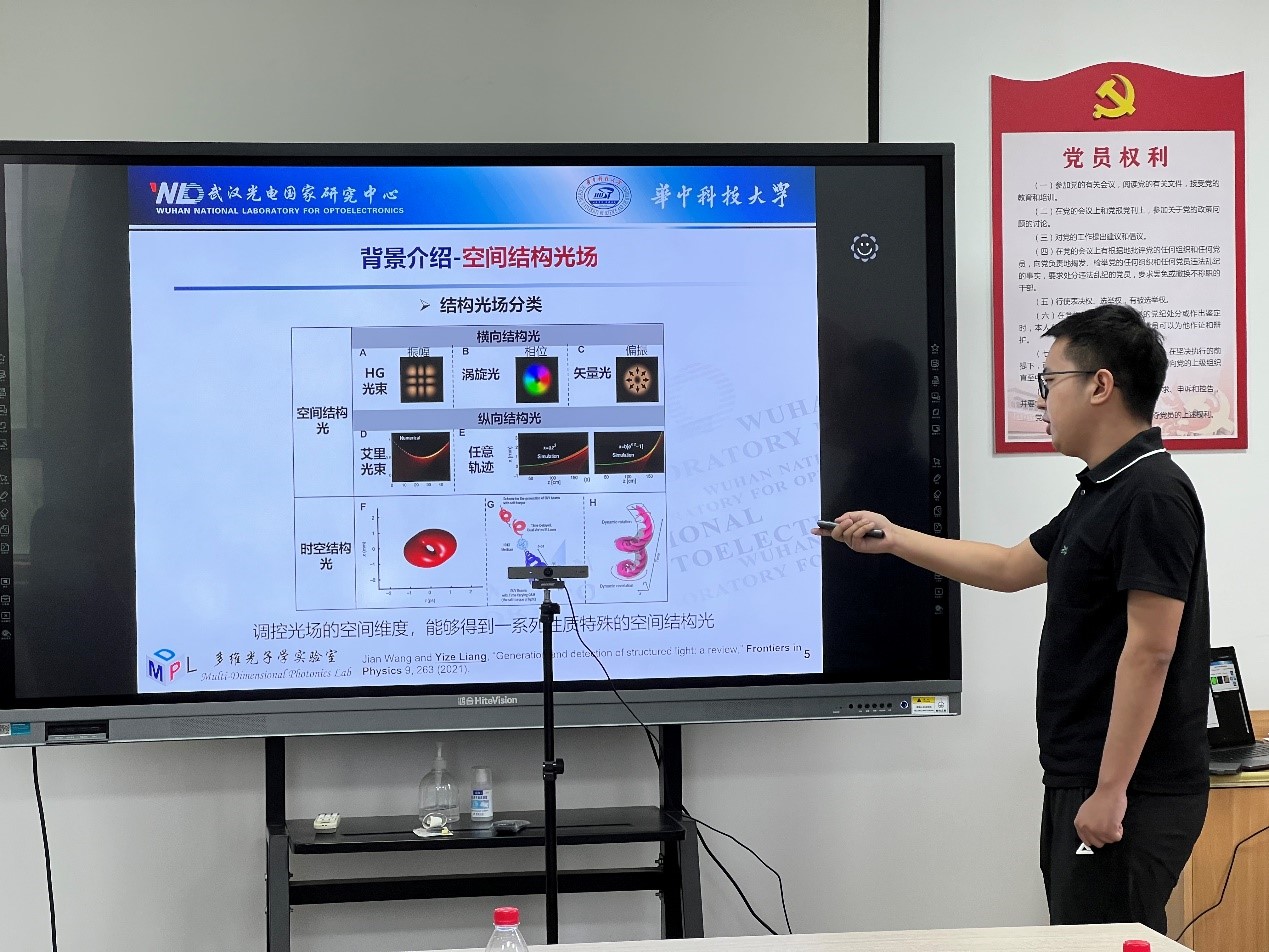 新南威尔士大学胡龙、中国科学技术大学雍佳乐、华中科技大学梁益泽等3位青年学者分别作了题为《Phase segregation behaviours of halide perovskites》、《飞秒激光仿生调控材料浸润性》、《空间结构光场多维调控表征及其通信和计量应用研究》的专题报告,并对个人近几年的科研工作进行了介绍。与会学者就光电领域相关问题进行了交流研讨。