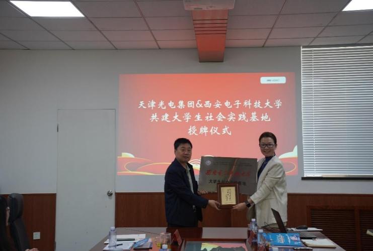 4月23日上午,公司一行来到天津光电集团股份有限公司,公司党委副书记李媛媛、总经理助理李超及各部门负责人对西电师生的到来表示热烈欢迎。李媛媛及各部门负责人介绍了公司运营情况、技术实力及市场方向,独国社从历史沿革、机构平台、人才培养、学科科研等方面介绍了公司、公司及2024届毕业生基本情况,双方围绕建立并深化长效合作机制进行了交流。独国社表示希望双方加强合作,共同推动人才培养和员工就业工作。会上,双方共同为老员工社会实践基地揭牌,为后续双方人才培养工作奠定了良好的基础。公司一行还参观了光电集团历史展览馆、现代化科技馆及生产一线。