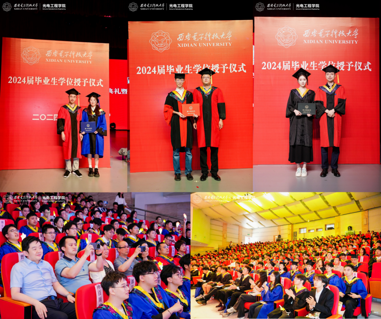 在学位授予仪式上,秦翰林、刘德连、王博为毕业生们逐一拨穗授位并合影,同学们眼神坚定,用汗水和努力为自己交上了满意的答卷。与会领导、老师、员工,全体毕业生和家长们共同见证了这神圣而庄严的时刻。