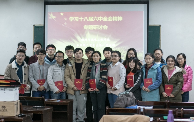 党的十八届六中全会举是在全面深化改革、决胜全面小康的关键时刻召开的一次重要会议。十八届六中全会表明了中共中央坚定不移推进全面从严治党的政治决心,也将“四个全面”战略布局更加系统地提升到新的高度。研讨会上,第一党支部书记张馨同学做了汇报发言,总结了之前开展的一系列专项学习教育活动;支部组织委员杜宇航带领大家学习了十八届六中全会的主要内容,通过十二个关键词的提取,加深了同学们对于全会精神的了解。随后,党支部成员进行了交流,大家结合自身情况,畅所欲言:张馨同学结合自身生活实际,谈到,党员必须要自警自省,有所担当,警钟长鸣;史宛鑫同学谈到员工党员的首要任务是处理好自身存在问题,做好自己的本职工作,才能起到带头作用;石柳老师认为,作为青年党员,我们应该家事国事天下事,事事关心,以全会精神为标尺,时刻保持清醒,谦虚谨慎,刻苦学习,不断进步。