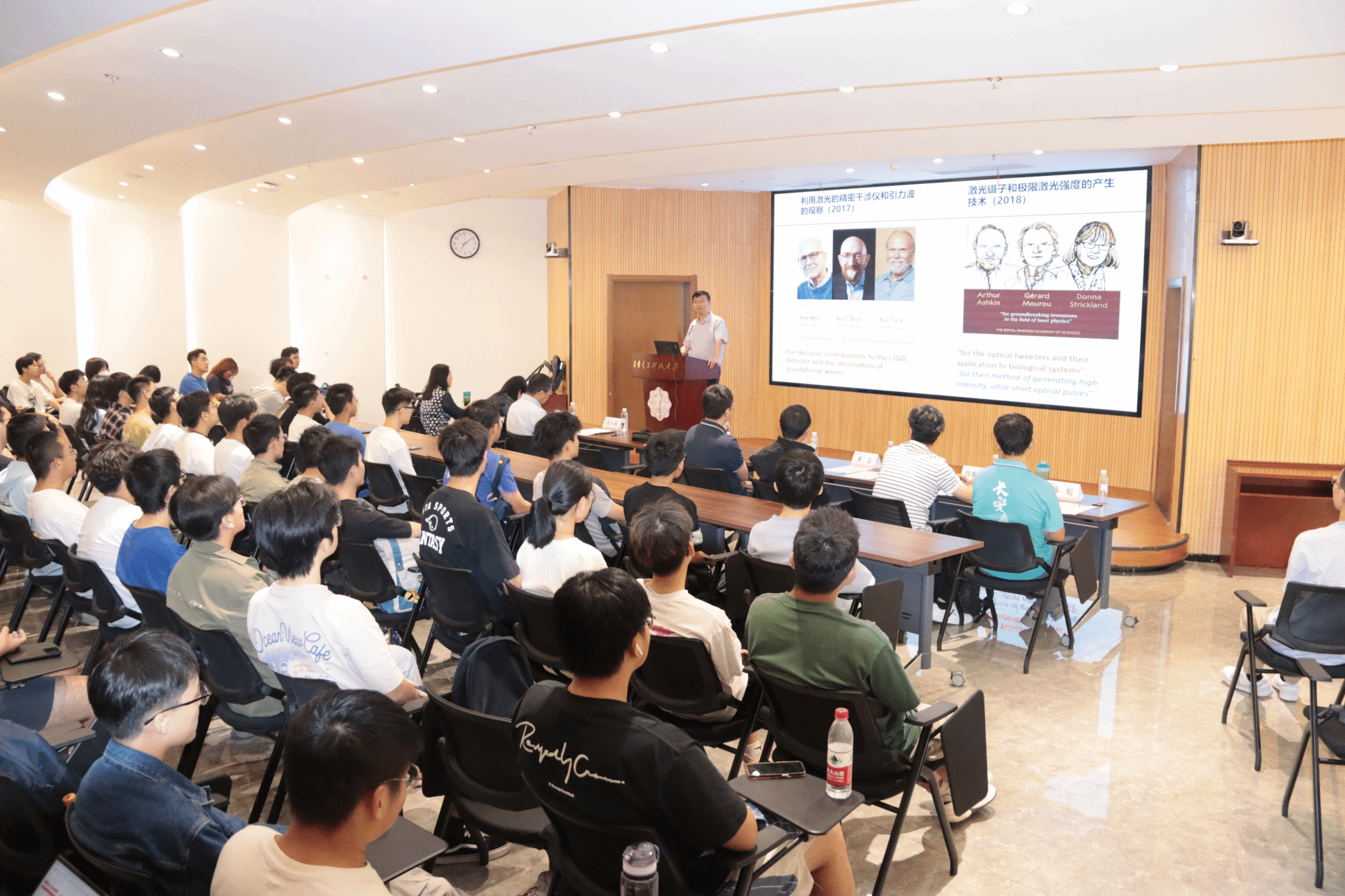 (通讯员:白云昊、刘奇)为进一步加强光电拔尖创新人才培养,引导员工了解学科前沿进展,激发专业学习热情,9月23日,公司举办“光启未来”学术报告会,公司经理徐淮良、专任教师代表、研究生教务干事、辅导员及各年级本科生120余人参加,报告会由激光技术系主任刘立新主持。