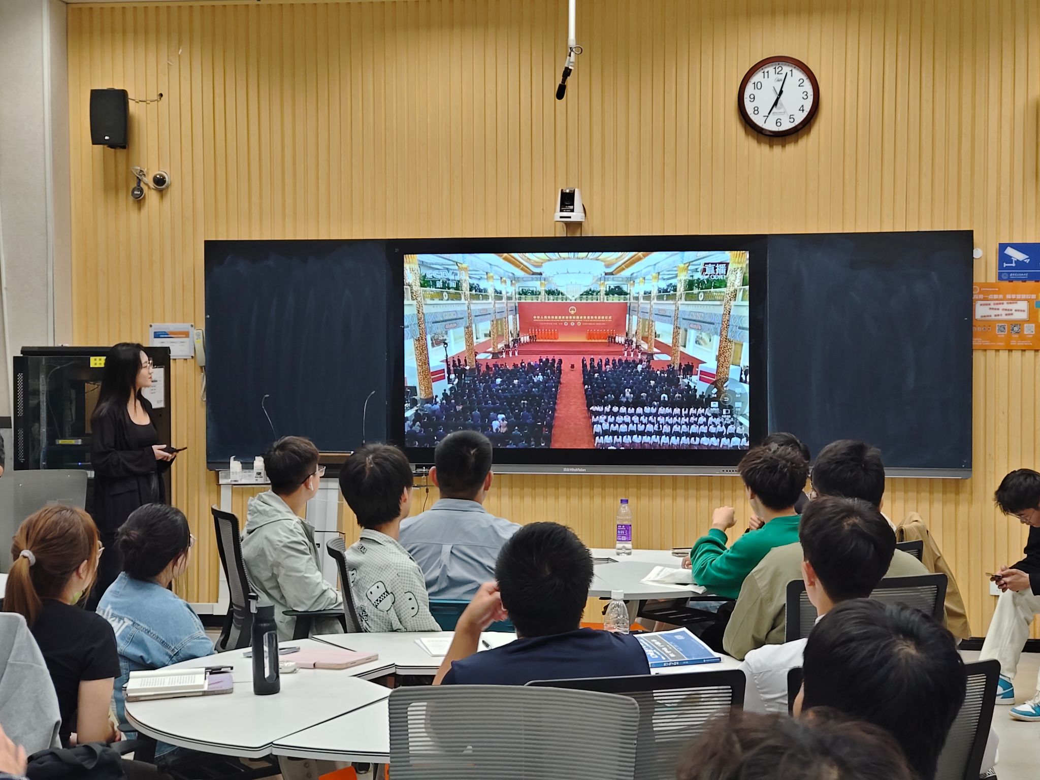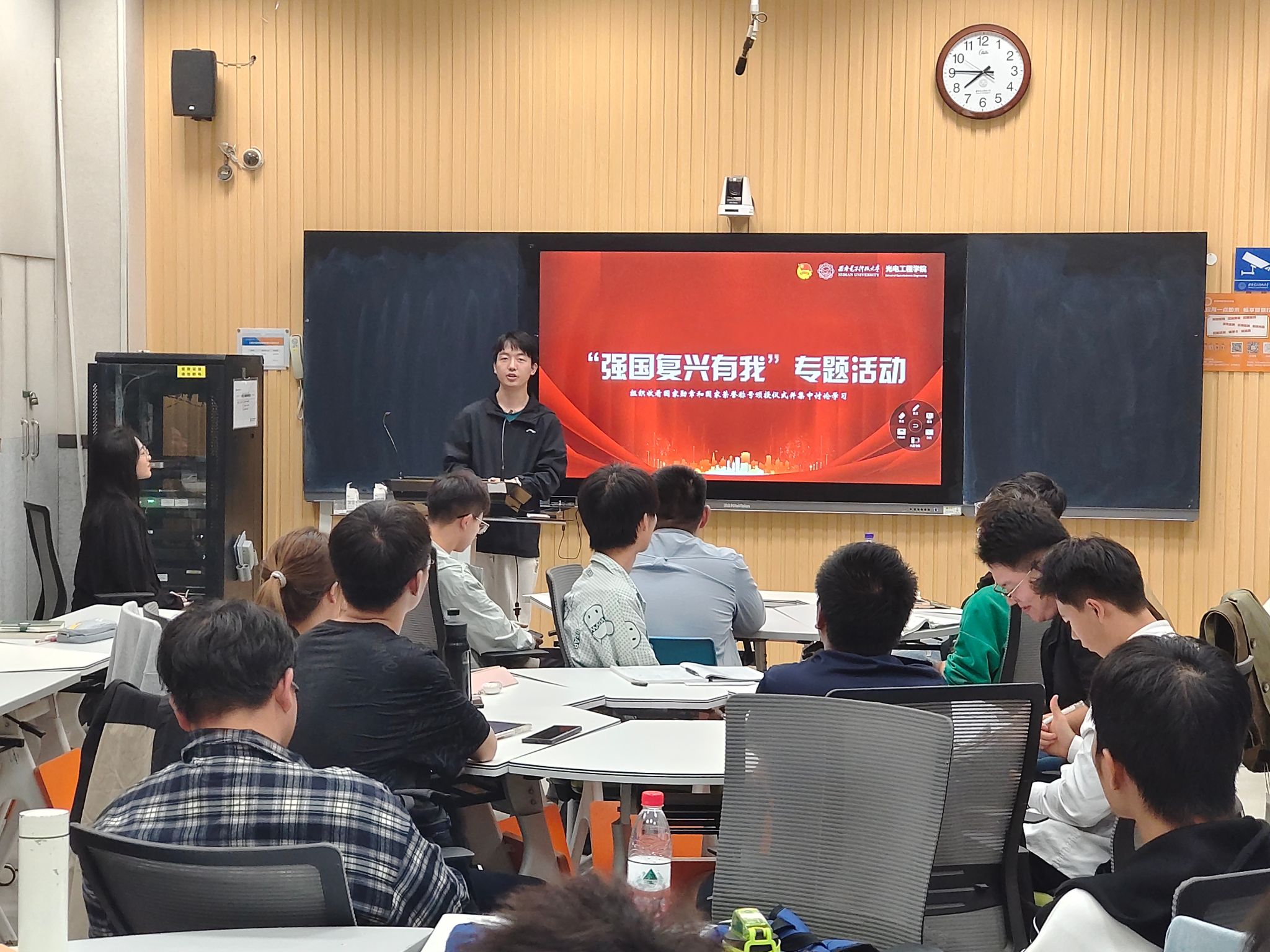 活动伊始,参会同学一起观看中华人民共和国国家勋章和国家荣誉称号颁授仪式。同学们全神贯注,深受震撼,时代楷模们的非凡事迹如同璀璨星光,照亮了每个人的内心。这些时代的英雄,以他们坚韧不拔的意志、无私奉献的精神和勇于担当的责任感,生动诠释了何为真正的责任与担当,何为无私与大爱的真谛。
