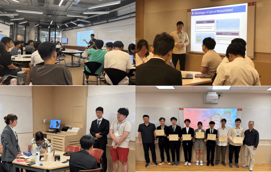 访学团成员在教学活动中分为四个小组,分别进行了激光成像与应用、新型光学材料与器件等课程学习与实验室交流学习。结业仪式上,28位访学成员分成4个小组进行汇报展示,采取分工协作、独立汇报、小组互评、教师点评的方式,分别汇报访学期间的所学、所思、所悟。经过现场打分得出优胜组,由项目负责教师颁发荣誉证书和结业证书。