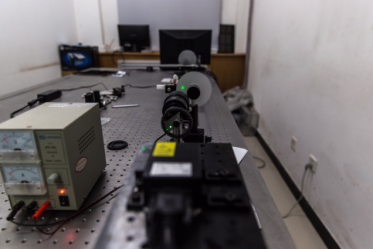 在2026世界杯官网北校区西大楼Ⅱ-210的实验室里,摆放着一套利用LED光源照明的无透镜散射成像实验系统。这套系统正中间,竖直放置着一块毛玻璃。毛玻璃的一边是观测目标,另一边是没有安装镜头的CCD相机。