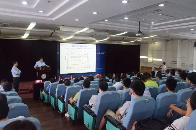 聘任仪式结束后,夏佳文院士作了题为“重粒子加速器在肿瘤治疗中的应用”的学术报告,介绍了重离子治疗癌症肿瘤的原理、发展历史、治疗装置、关键技术及在我国的应用推广情况。最后,夏佳文院士与现场师生进行了互动交流。