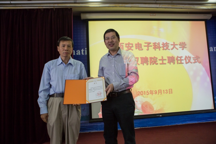 公司执行经理郭立新首先介绍了夏佳文院士的个人简历和学术业绩,高新波宣读了聘任文件,并为夏佳文院士颁发聘书和佩戴校徽。