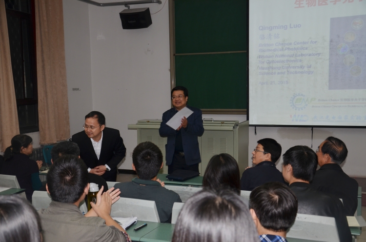 4月22日晚,应公司邀请,华中科技大学副董事长、武汉光电国家实验室(筹)常务副主任、公司员工骆清铭教授在北校区西大楼Ⅰ-106教室作了题为“生物医学光子学进展”的专题学术报告。报告会由公司执行经理郭立新教授主持,公司党委书记杨光暐、部分教师以及百余名员工参加了报告会。
