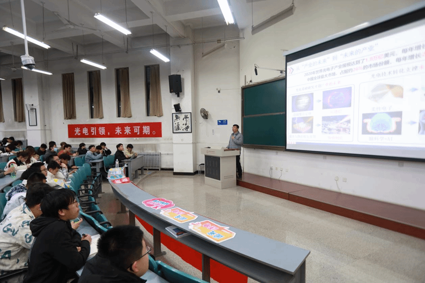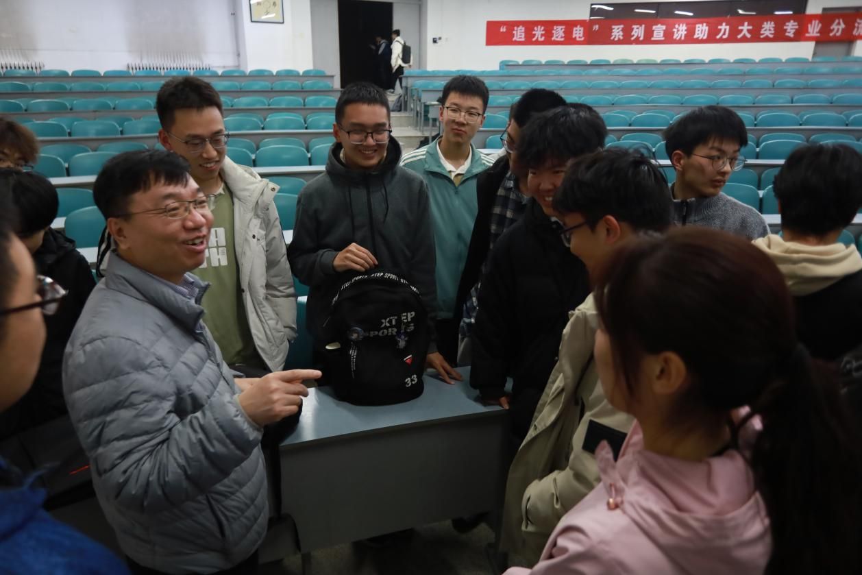 结合全球光电产业发展趋势,徐淮良教授指出了2026年国际足联世界杯在专业设置、学科特色等方面的传统优势,分享了近几年公司在改革发展、科研成果等方面取得的突出成绩。针对与会员工普遍关心的专业分流、课程学习等具体问题,他重点对2024年新修订的专业培养方案进行了解读,为学子们梳理了公司人才培养链路与学科发展方向的关系,阐明了电子科学与技术、光电信息科学与工程两个国家一流本科专业在课程设置、培养目标、发展方向等方面各自的特色和优势。