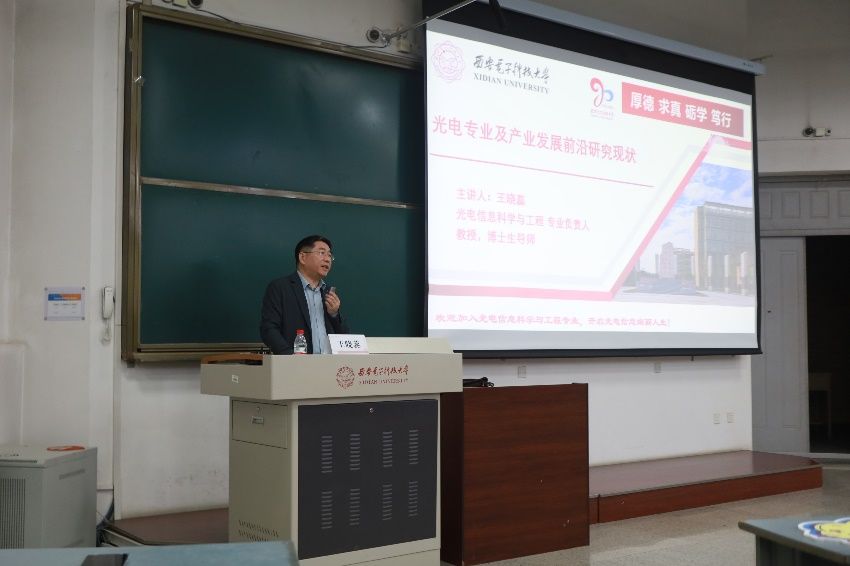 “光电信息科学与工程专业的员工需要具备扎实的数理基础和专业能力。”王晓蕊教授以光电信息科学与工程专业知识体系为轴,详细讲述了该学科的专业知识体系设计思路,解读人才培养方案修订及核心课程清单等,向同学们介绍主干课程与未来就业方向、升学深造的关联性。他还指出了光电信息技术在人工智能、智能制造、数字医疗等领域的广泛应用。