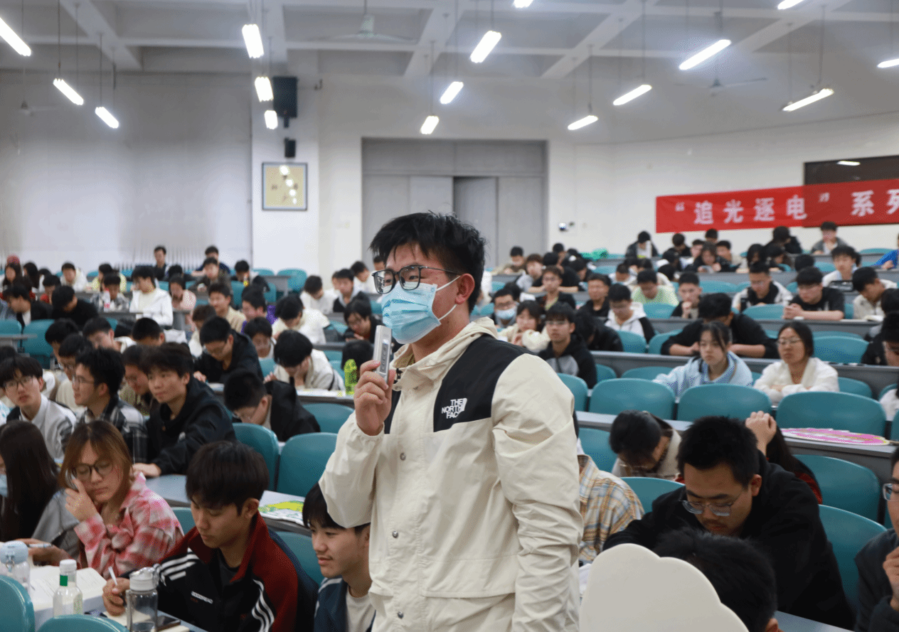 在互动问答环节中,同学们热情地与王晓蕊教授共同讨探了许多光电领域的热门话题。针对“如何定义光子携带的更多信息”,王教授简要介绍了光子相较于电子具有的多方面性态,并启发同学们自主进行探索。“光电领域对哪些卡脖子技术有突出贡献?”王教授侃侃而谈光电芯片在前沿科技上的巨大前景。“光子如何进行信息的存储,计算与传输”等问题,王教授用深入浅出的话语进行了简明易懂的阐述,引起同学们浓厚的兴趣。