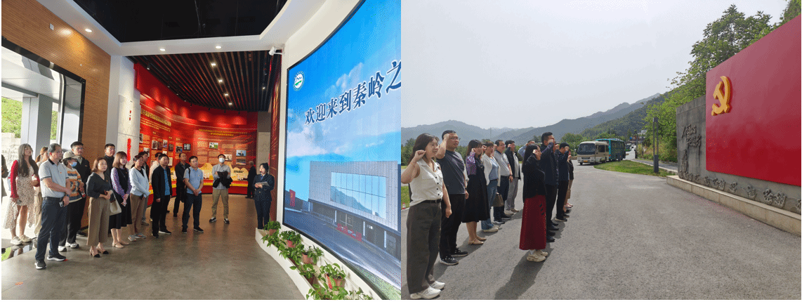 在讲解员的带领下,党员同志们依次参观了“秦岭之诫”“秦岭之殇”“秦岭之治”“以案示警”“大美秦岭”等5个展厅,重温了习近平总书记来陕考察重要讲话和关于秦岭生态环境保护的重要指示批示,了解了秦岭北麓违建问题专项整治总体情况及鄠邑段生态修复成效,深刻认识到党中央决策部署的重大意义和深入推进全面从严治党的坚定决心。随后,大家走进了秦岭生态环境保护研究中心和秦岭保护智慧管控中心,直观了解了秦岭生态保护的网络化、网格化、志愿化建设情况。参观结束后,独国社带领全体党员整齐列队、高举右拳,面向鲜红的党旗重温入党誓词,感悟初心使命。