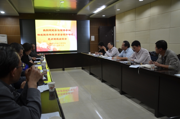 会议随后就如何凝炼公司本科教育质量提升计划特色亮点的主题展开了座谈,与会教师围绕主题,踊跃发言,根据公司的实际情况从营造良好教书育人环境、课程改革、青年教师培养、课堂质量监控、教师考评体系构建、教学模式探索等方面展开充分交流。公司党委书记杨光玮谈到,公司承担着全校2门基础课的教学任务,公司要强化特色立院,下功夫实施好“桃李计划”,抓好骨干教师的业务培训,提升教学水平,在教师培训方面形成品牌。郭立新指出,公司应加强专业学科交融,要有“名师、名课、名教材”,形成以物理为基础,结合有光电、微波知识,面向工程创新的人才培养特色。教务处处长郭宝龙认真听取大家的发言,肯定了公司在本科公司产品工作的投入与努力,并对公司如何丰富超越工程和“桃李计划”提出了更具体的要求和期望。