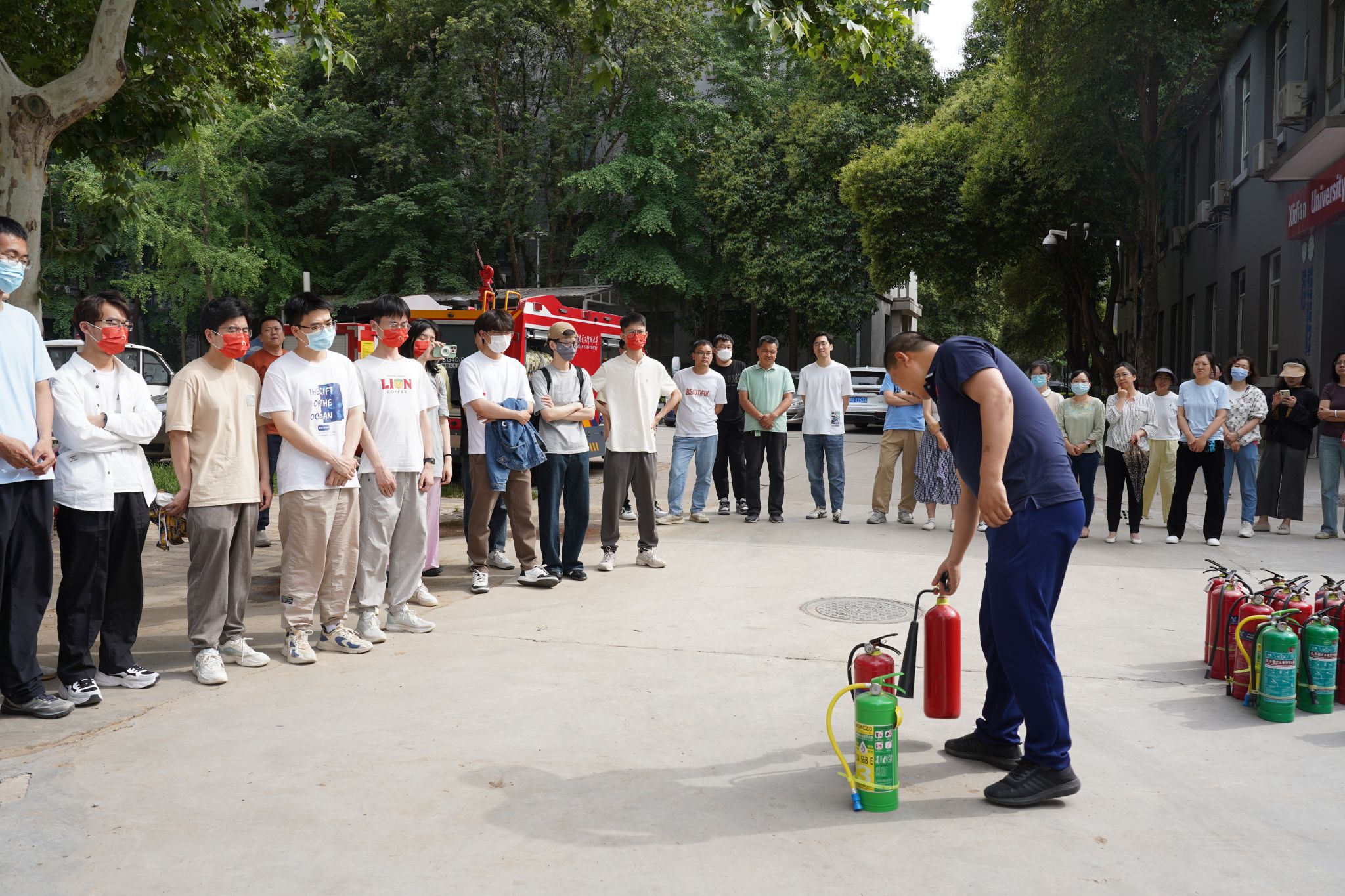 此次培训活动旨在普及消防知识,增强公司师生防灾减灾意识,提升应急自救互救能力。培训结束后,公司师生前往校消防站对灭火器的使用方法进行了实地学习,并开展了灭火器实操训练。