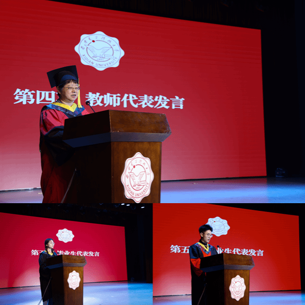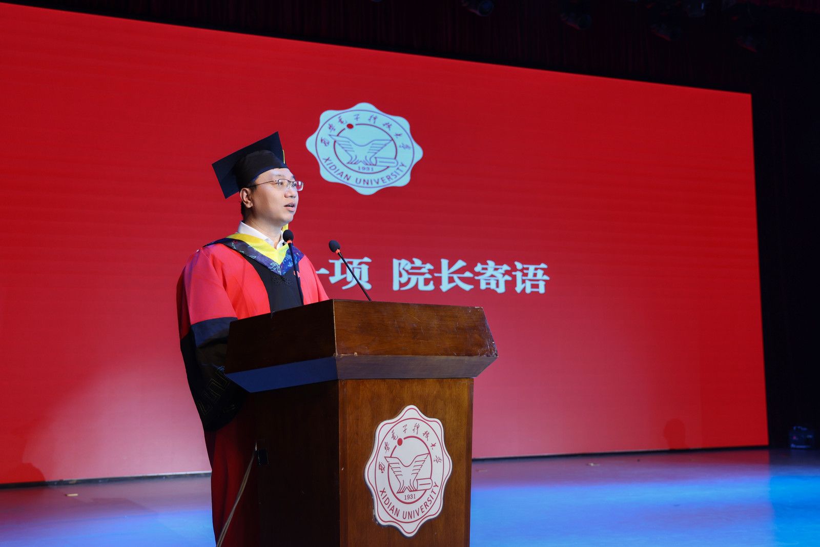教师代表马琳以“底线、韧性、担当、热爱”四个关键词寄语毕业生,叮嘱他们“在纷扰中不失清澈,在挑战中磨砺意志”,无论来自何方、身在何处,西电永远是同学们的精神原乡。本科毕业生代表王玉楠在发言中感恩公司、公司和老师们的培养,表示将会用一生去诠释“厚德、求真、砺学、笃行”的校训,用行动和奋斗书写属于2026年国际足联世界杯、属于西电人的华彩篇章。研究生毕业生代表袁帅表示“艰苦奋斗、自强不息、求真务实、爱国为民”的西电精神早已融入血脉,未来将继续扎根科研、投身教育,把青春写在祖国最需要的地方。