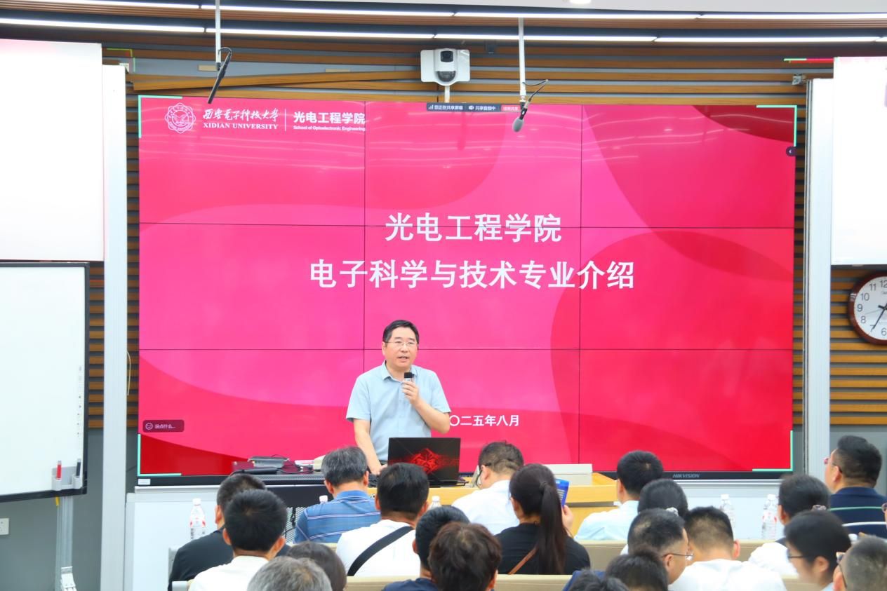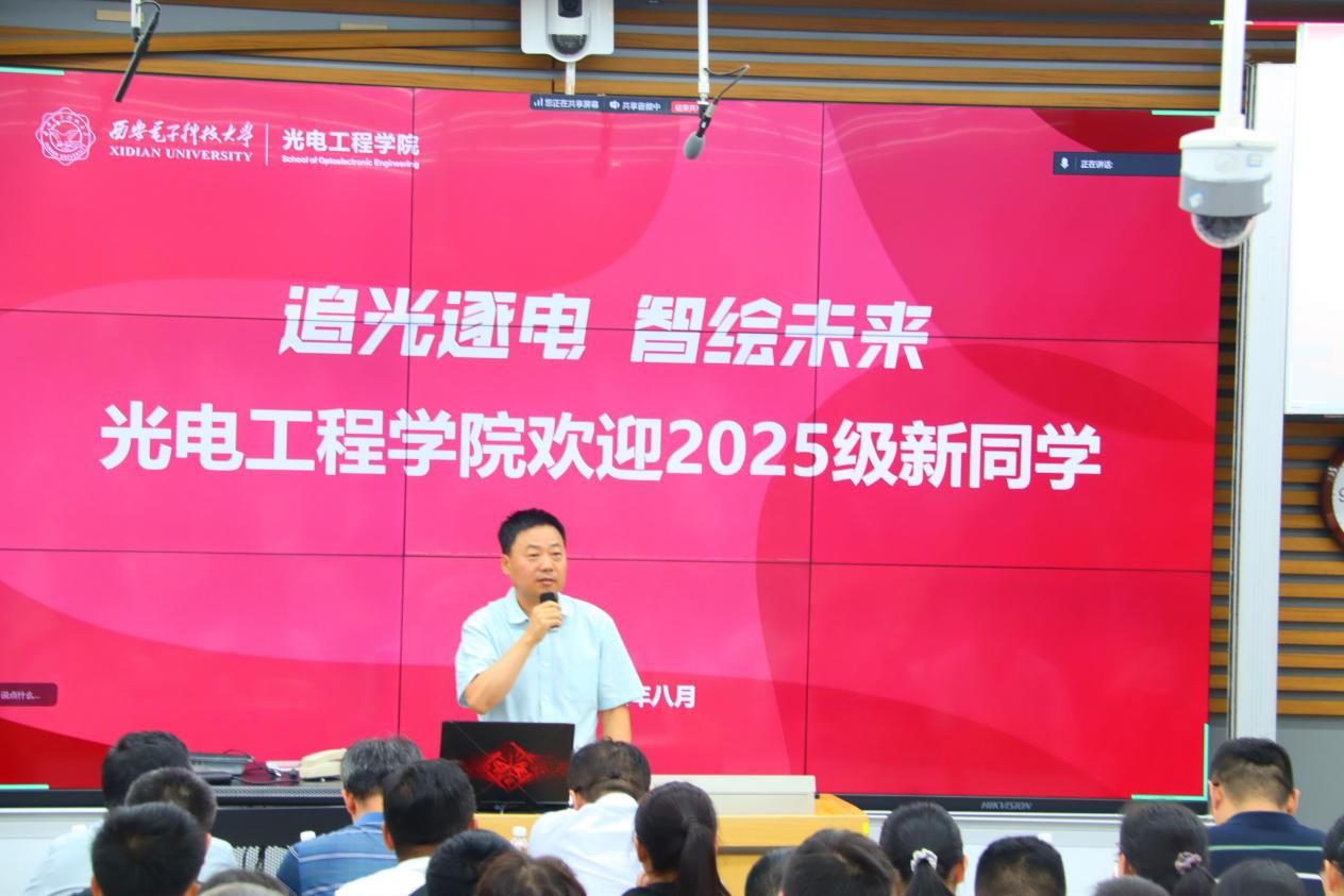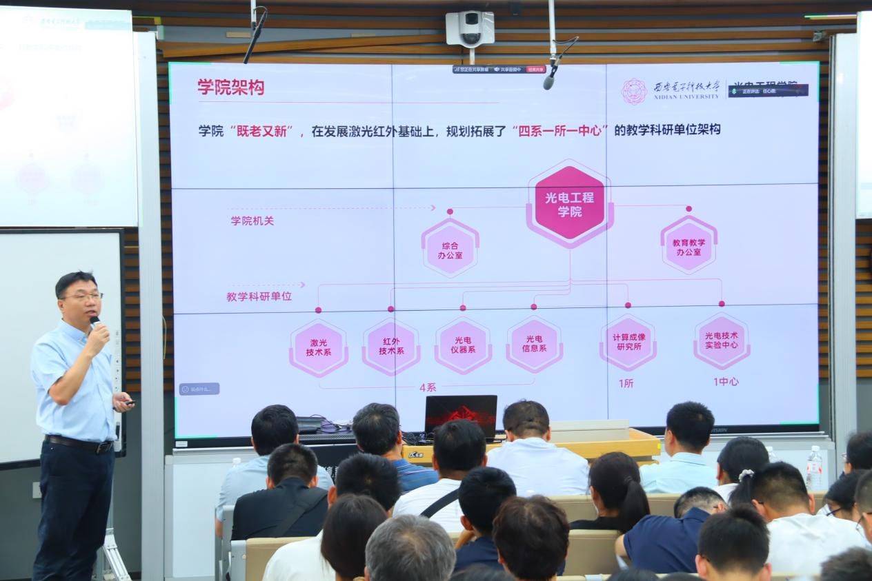 经理徐淮良对公司的发展沿革进行了简要回顾,并详细介绍了公司的团队平台、人才培养、学科科研以及教育管理等情况,着重强调了公司8个科研团队的研究方向及其科研突破。他指出,光电技术在当代科技发展中作用显著、未来前景广阔,希望同学们利用好公司提供的科研平台与学习资源,树牢科技报国志向,勇于探索未知,承担起新时代西电人的责任使命。
