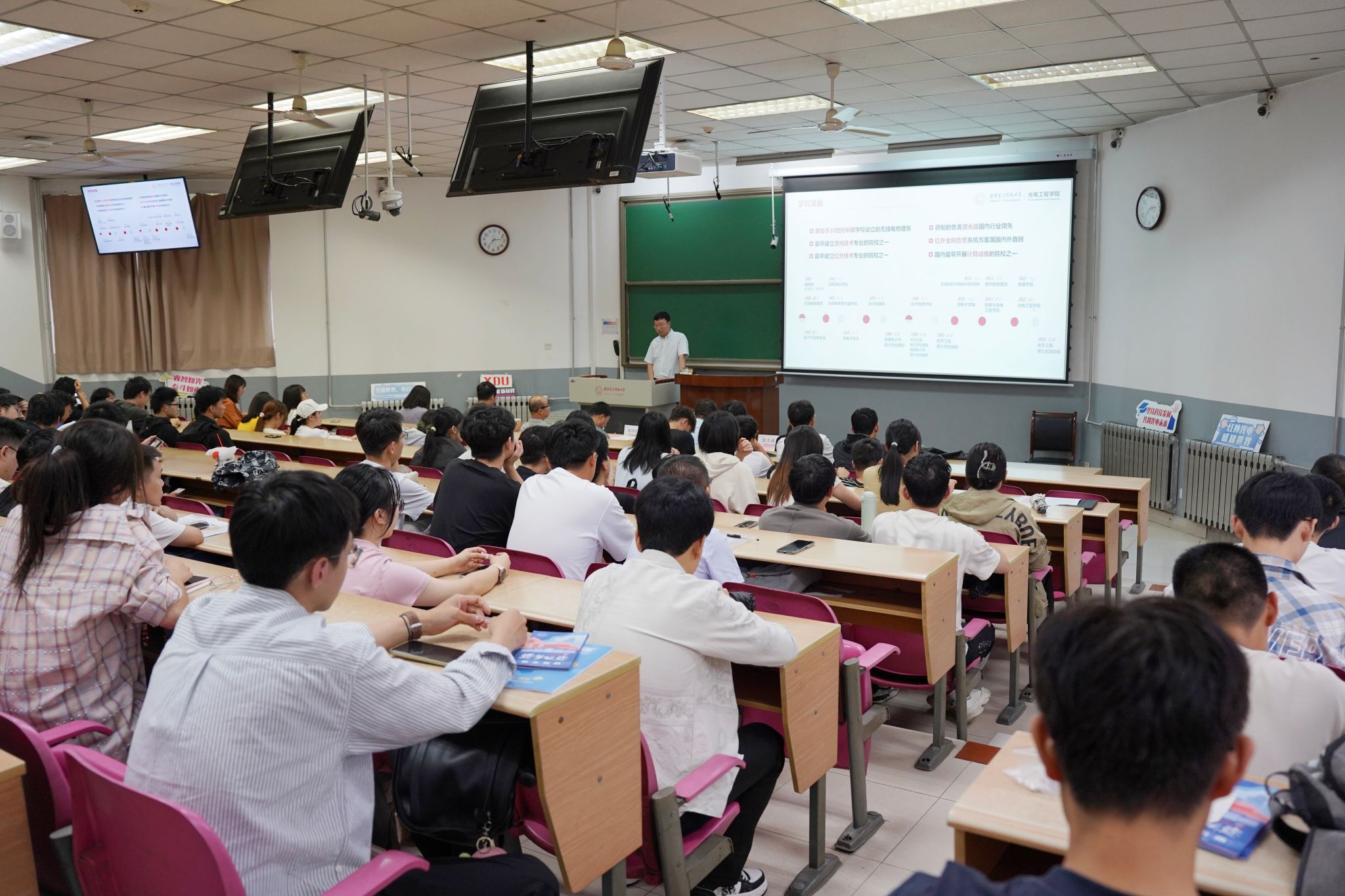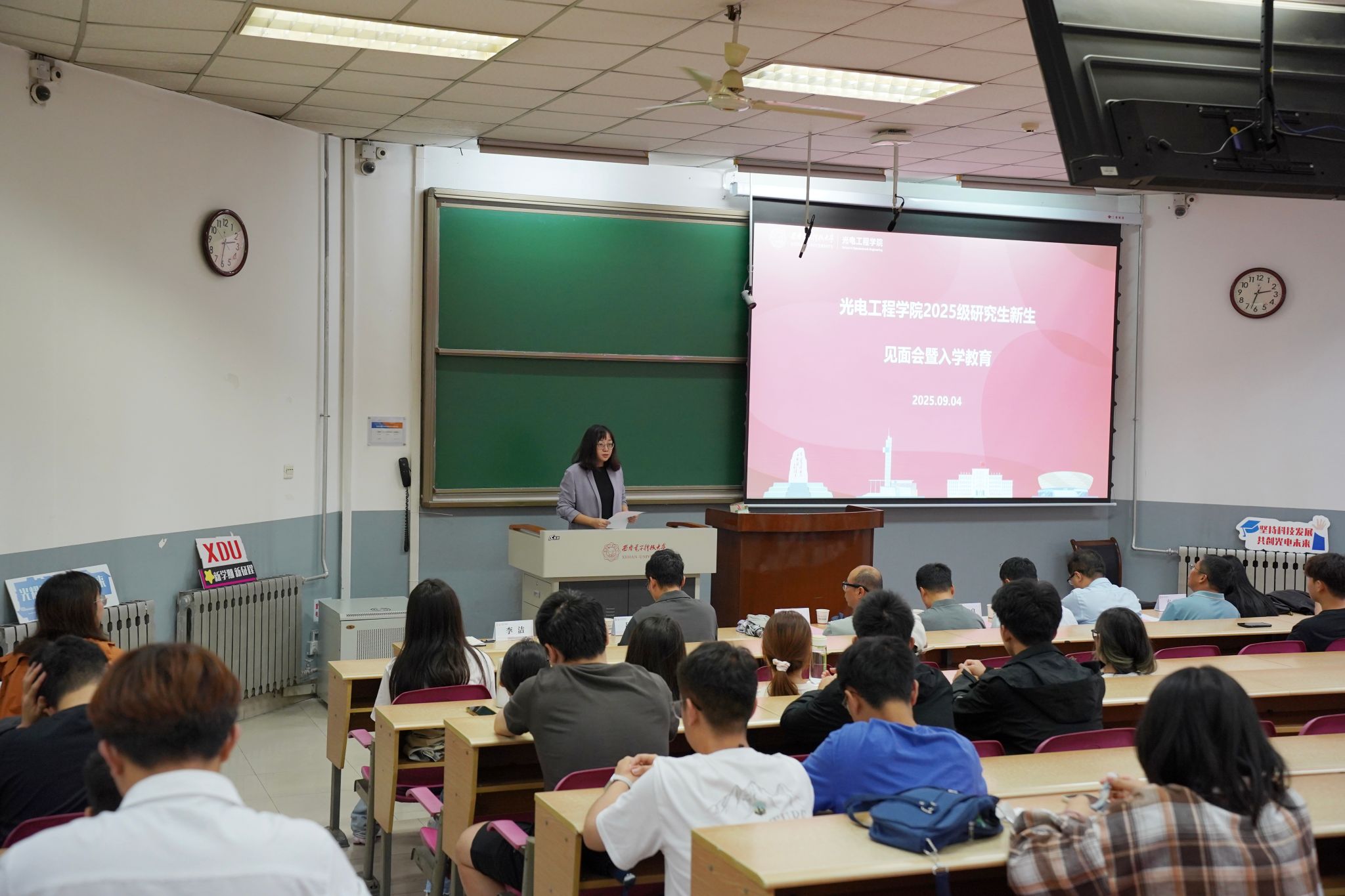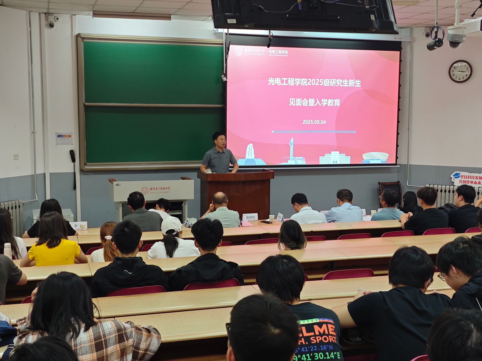 党委书记独国社在总结讲话中对研究生新生再次表示欢迎,并结合光电学科特色与国家战略需求,以近期阅兵活动中亮相的新型军事装备为例,强调专业选择与国家发展的紧密联系。他希望同学们坚定科技报国信念、尽快适应以课题为导向的研究性学习、注重身体锻炼与情绪调节,营造积极向上的科研生活氛围,成长为德才兼备、身心健康的创新型光电人才。