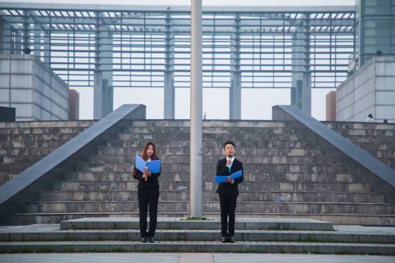 国旗升起后,员工代表在国旗下进行了以《新时代的西电人》为主题的朗诵,他们的声音回荡在广场,时而激情澎湃,时而娓娓动听,如一曲大型交响乐萦绕耳畔。悠久的旋律将同学们带回半部电台起家的红色岁月,诉说着那段波澜壮阔的历史背后数不尽的辛酸。激情洋溢的诗朗诵带领着同学们遍观祖国近年来的发展历程,自豪之情溢满每个人的心头。有志青年求实创新,红色历史薪火相传,西电,就是永恒的丰碑。