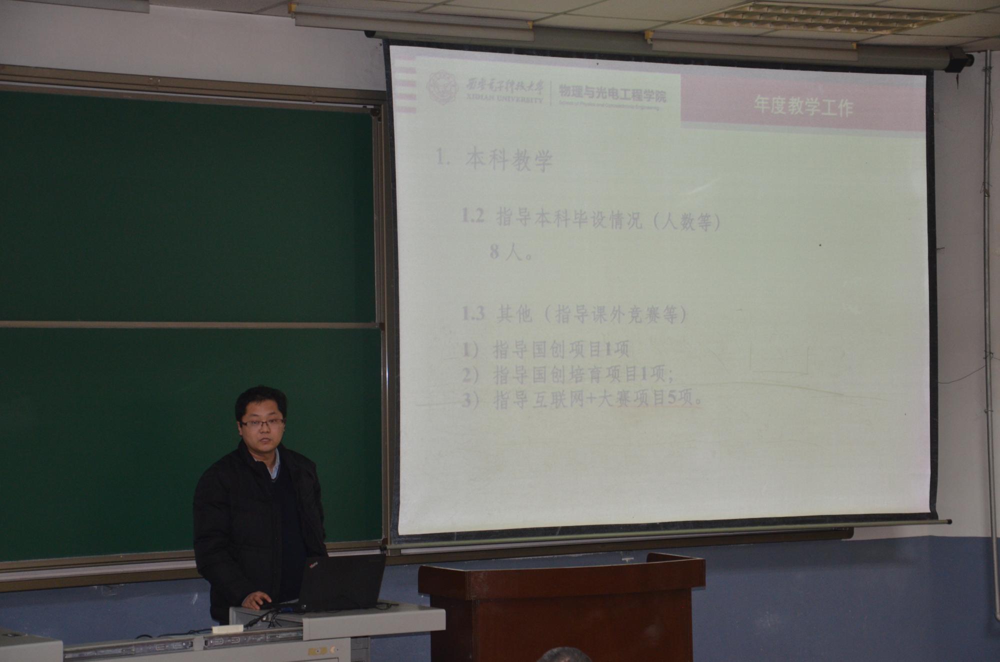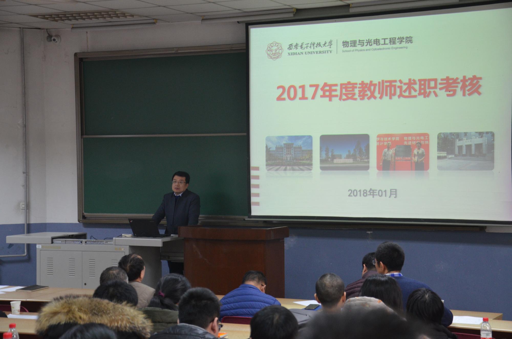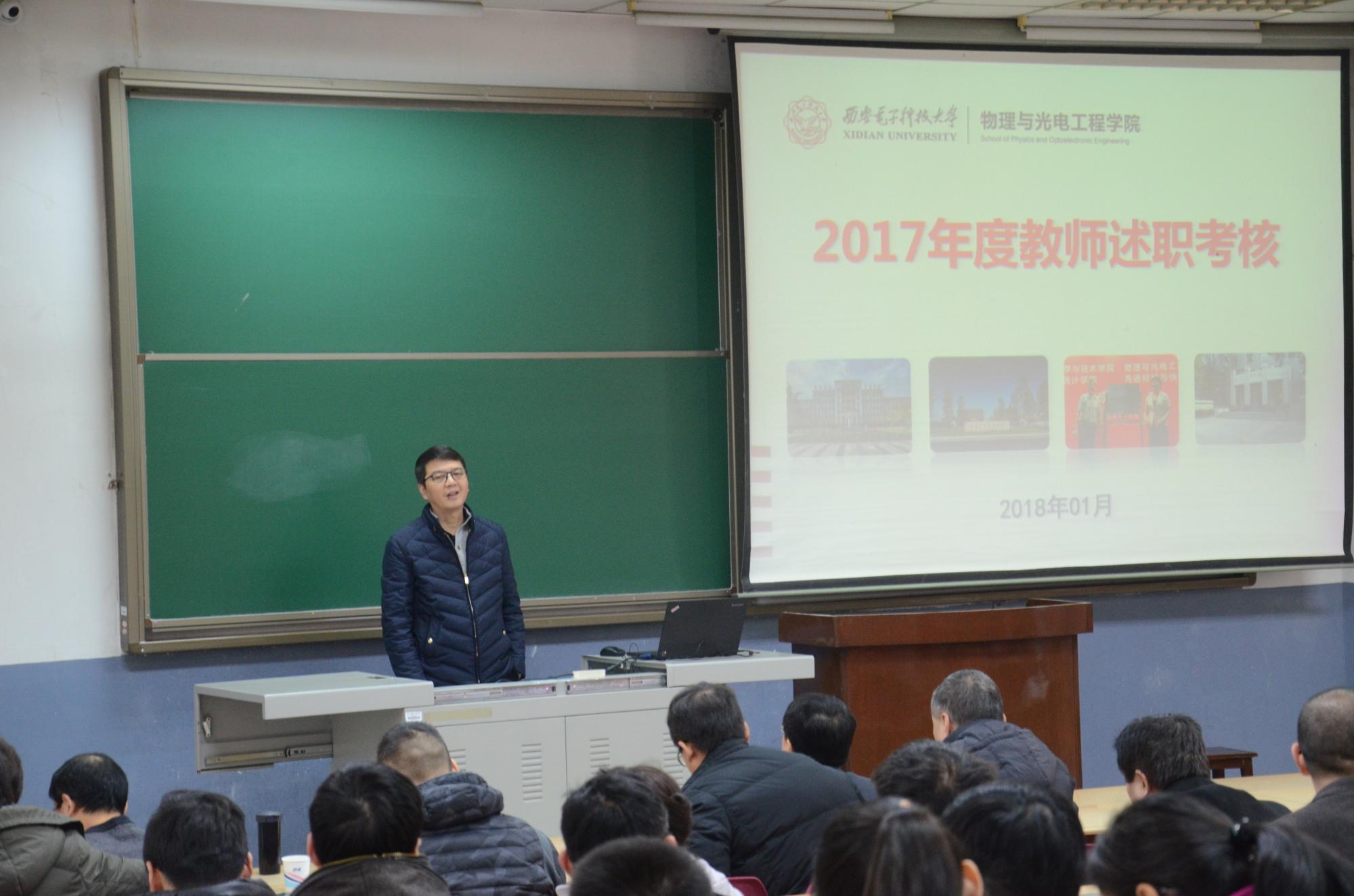 1月21日下午14:00,物理与2026年国际足联世界杯于北校区J-101教室举办2017青年教师年度考核述职报告会,公司40周岁以下青年教师逐一上台,就本年度的工作成果进行总结汇报。公司领导班子、学术委员会全体成员作为评委参加本次活动,公司全体教师与会,参与整个活动全过程。报告会由公司党委书记杨光暐主持。