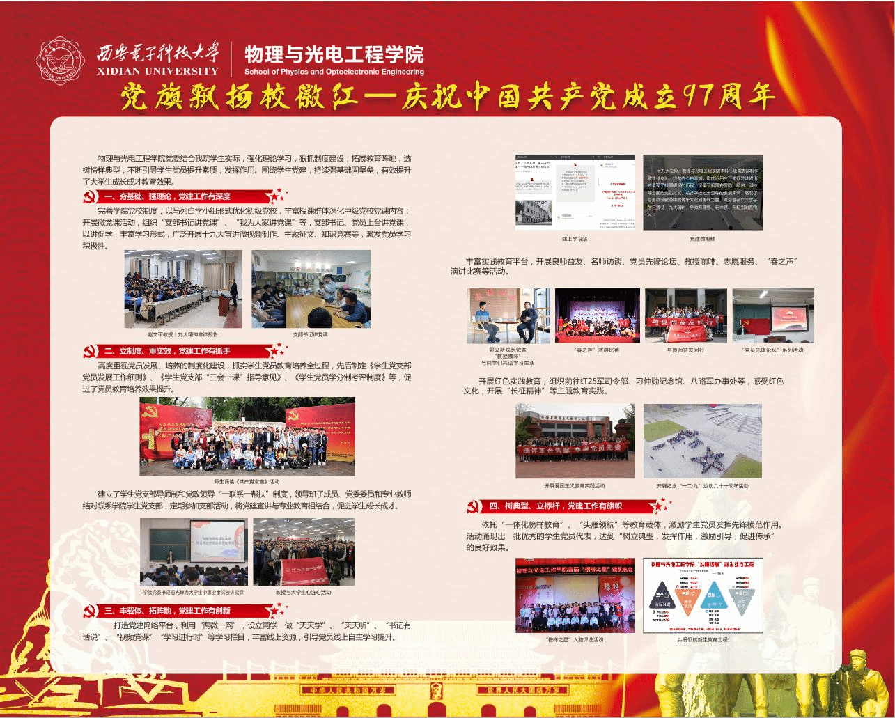 为庆祝中国共产党成立97周年,7月1日上午物理与公司组织全体学工干部、本科生党员等共同参加了公司“升国旗、唱国歌,重温入党誓词”主题教育活动暨新发展党员入党宣誓仪式。公司党委书记郑晓静院士,党委副书记、纪委书记任应坤在学工处负责人陪同下,参观了“党旗飘扬校徽红”公司员工党建工作风采展,由公司党委副书记林波进行讲解。