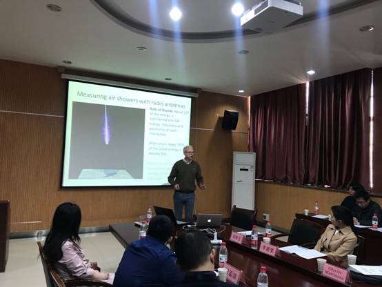 会上,张进成对武向平院士心系母校发展表示感谢。张进成介绍了公司服务国家重大需求的科研布局,并表示科研院将组织力量,全力服务巨型中微子探测射电阵列项目研究。武向平院士对项目背景和概况进行了介绍,对西电相关课题组前期参与的研究工作表示了肯定,并针对西电的研究特长梳理了西电可以参与的研究领域和方向。Olivier Martineau和Charles Timmermans先后详细介绍了巨型中微子探测射电阵列项目的科学目标、探测原理、技术需求和路线图。