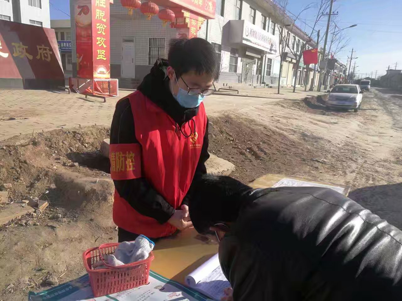 19级研究生梁家睿在看到团县委、小区的倡议书后,加入甘肃省庆阳市正宁县疫情防控工作中,在西坡村劝返点负责检测、录入往返车辆、行人信息,配合劝返没有紧急事务的出行者。梁家睿同学说:“虽然每天寒风刺骨,但是我心里一点都不冷。我们的认真排查,让周围群众感到安心,群众都积极配合工作,很多人为我所在的检疫点送来生活必需品。大家的支持让我们对打赢疫情阻击战有了更坚定的信心,此次工作经历,让我感受到了人民、社会团结一心的力量。如果祖国召唤,我会随时愿意挺身而出贡献自己的一份力量。”