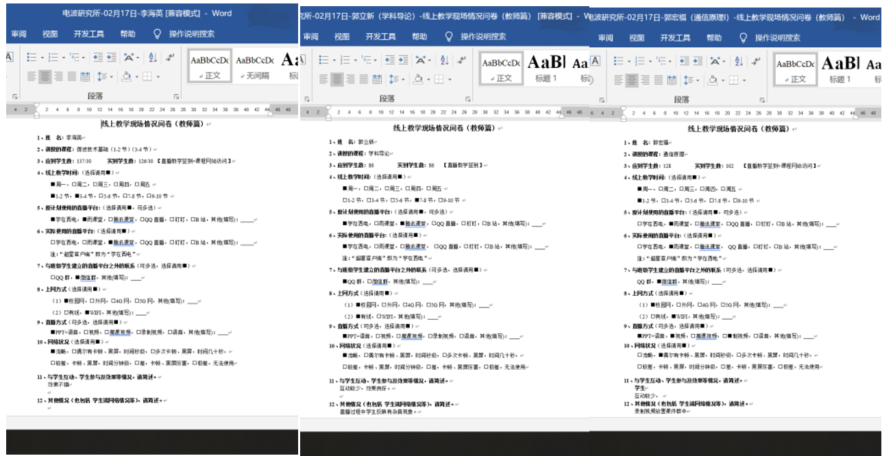 积极准备、认真备战,老师们怀着忐忑的心情迎来了线上教学“第一课”。刘忠玉老师课后说:“我课前一小时就把两台机子调试好,反复试验,满手心、满后背是汗,但事实证明有惊无险,一切正常”。郭立新老师、张民老师、魏兵老师、韩香娥老师、郭宏福老师、杨瑞科老师等老师纷纷叮嘱青年教师:“一定要保证教学效果”,“千万不能自说自念地读PPT”,“一定不能偏离教育的本质-育人、启智”。在教学交流中,老师们踊跃讨论,用他们的热情,以育人、启智为目标,奉献上一堂一堂的线上教学课。