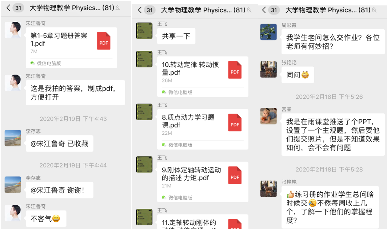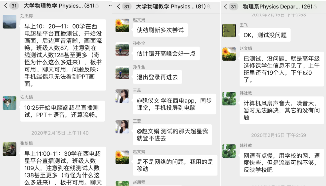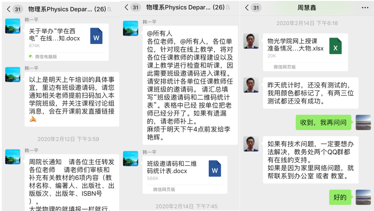 在接下来的教学中,不管是员工还是教师,对于这种线上的教学都还需要一定的时间来适应和提高教学效果。为了保证教学质量,大学物理课程组老师,依然会通过工作微信群,相互协助,共同备课,确保上课质量。同时与员工细心沟通,确保所有员工到课学习,并不断采集员工的反馈意见,不断提高员工的学习效果。在这个特殊时刻担当起作为高校教师的责任,为西电基础教学贡献自己一份微薄的力量,默默奉献,践行初心使命!