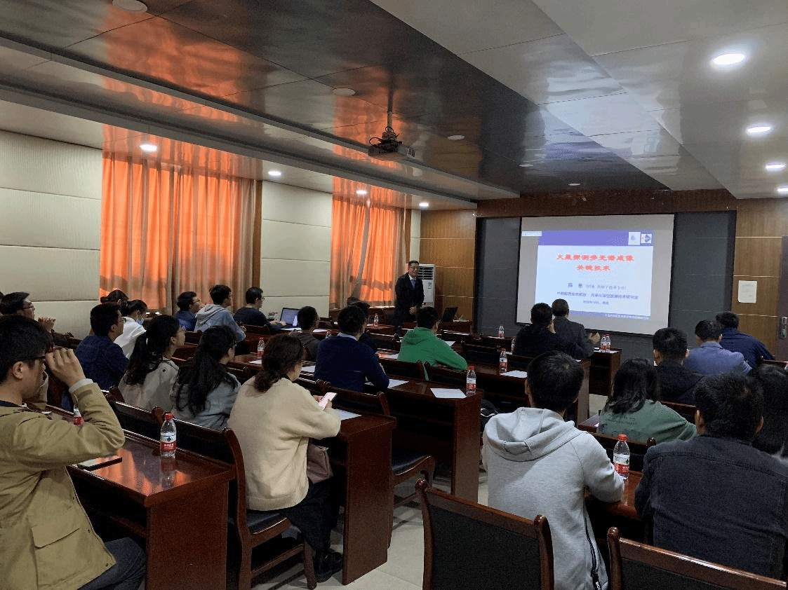 薛斌介绍了国际上火星探测的总体情况,讲解了进行火星探测的重要意义。从载荷的小型化、轻质化,设备的力学、热学可靠性,探测的原理及实现方法等方面对探测器“天问一号”多光谱成像方面的若干关键技术及其解决方案进行了详细说明。他生动描绘了探测器探测过程中“绕、落、巡”的各个过程,将师生们的视野引向了“星辰大海”、引向了对茫茫宇宙的探索。