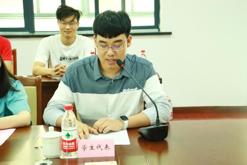第二学士学位班班长沙岩松作为员工代表分享了在西电的学习生活体会,对公司提供的优质学习环境和团队力量表示感谢,谈到在新的学期要树立新的目标、攀登新的高峰,也希望在未来有机会能将在浔学习的成果,“正向循环”注入南浔未来建设。