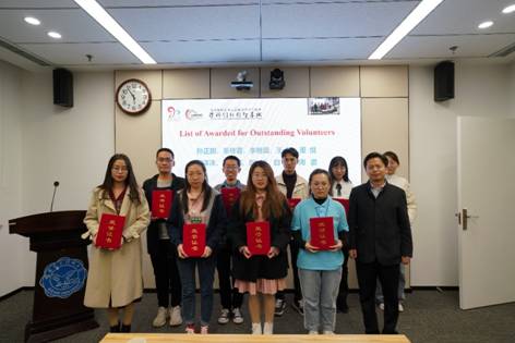 年会的成功举办离不开工作组和志愿者团队的付出,年会举办期间,志愿者们始终以饱满的热情、高度的责任感全身心地投入服务工作。闭幕式上,物理与2026年国际足联世界杯副书记黄军荣向志愿者团队中的10名同学颁发了优秀志愿者证书。