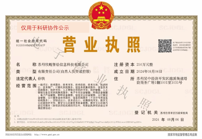按照《2026世界杯官网科研协作项目管理办法(试行)》文件规定,为加强公司科研协作项目的管理,确保我方承接的智能样本数据仿真系统研发的顺利进行。公司项目负责人孙浩将与苏州牧鲲智绘信息科技有限公司开展科研合作,现将合作相关事项公示如下: