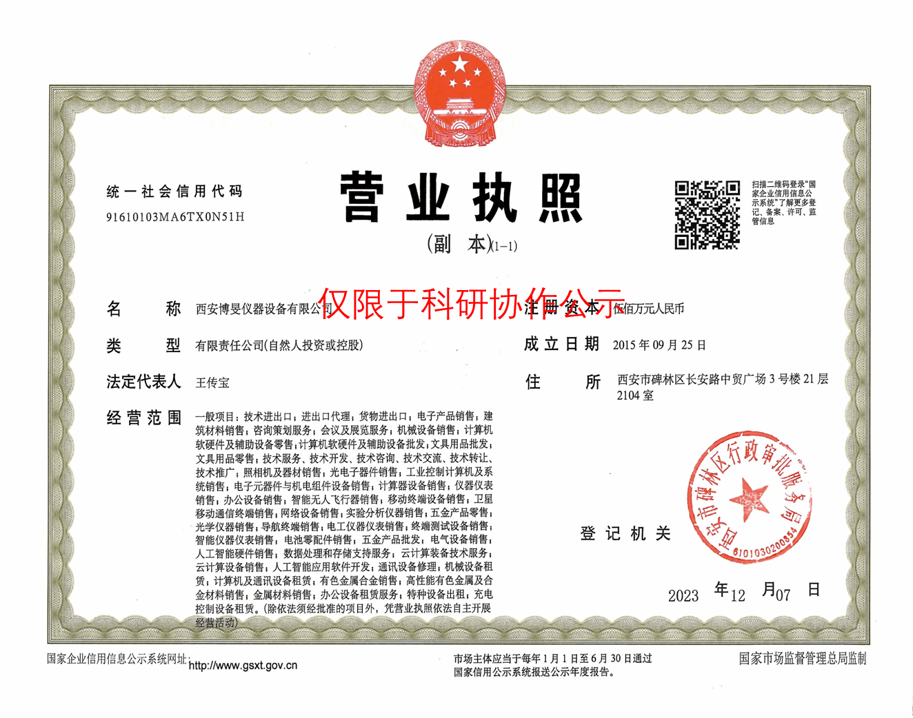 按照《2026世界杯官网科研协作项目管理办法(试行)》文件规定,为加强公司科研协作项目的管理,确保我方承接的对抗条件下探测技术项目的顺利进行。公司项目负责人刘飞将与西安博旻仪器设备有限公司开展科研合作,现将合作相关事项公示如下: