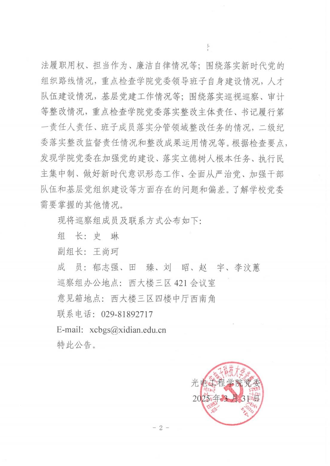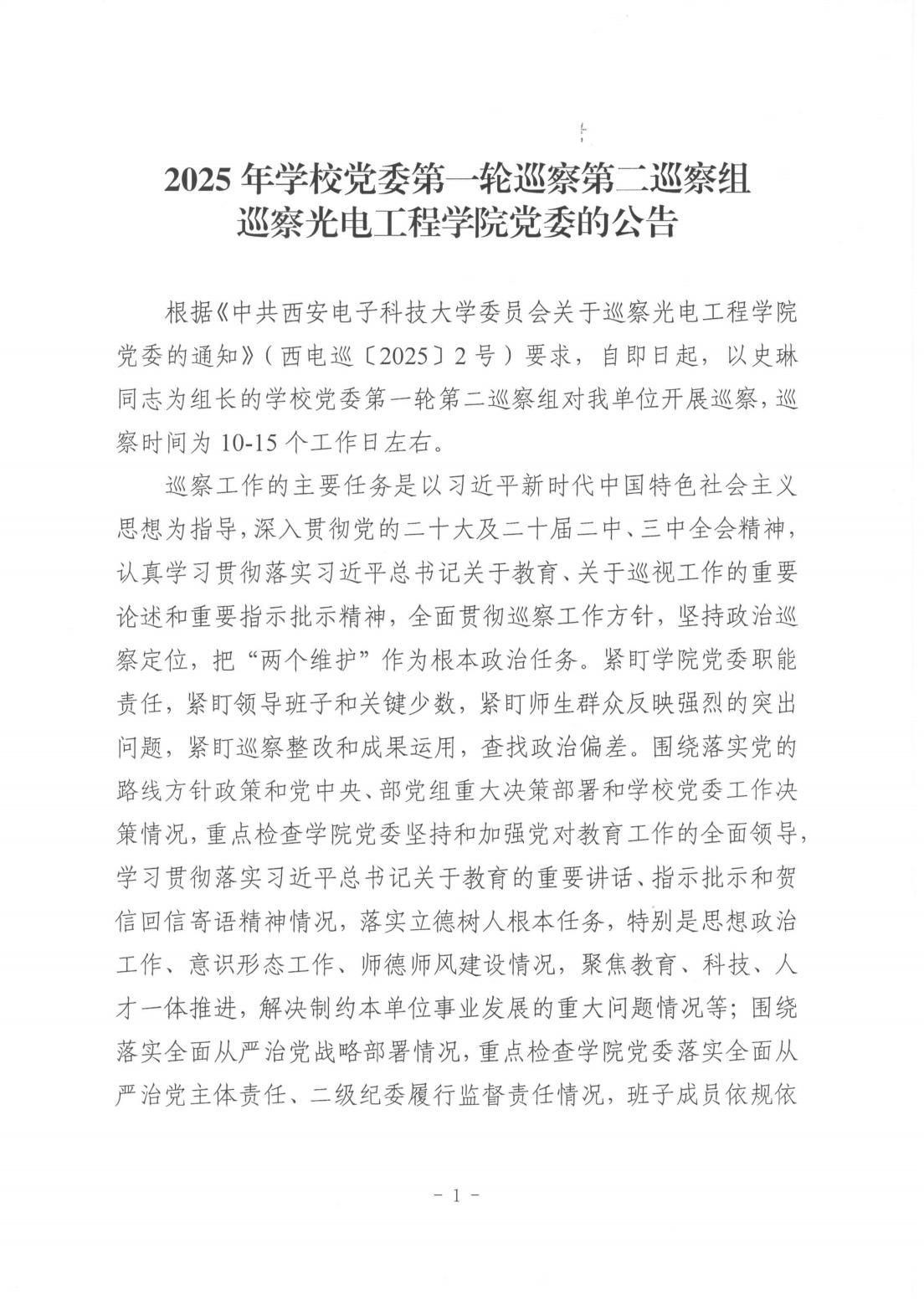 2025年公司党委第一轮巡察第二巡察组巡察公司党委的公告