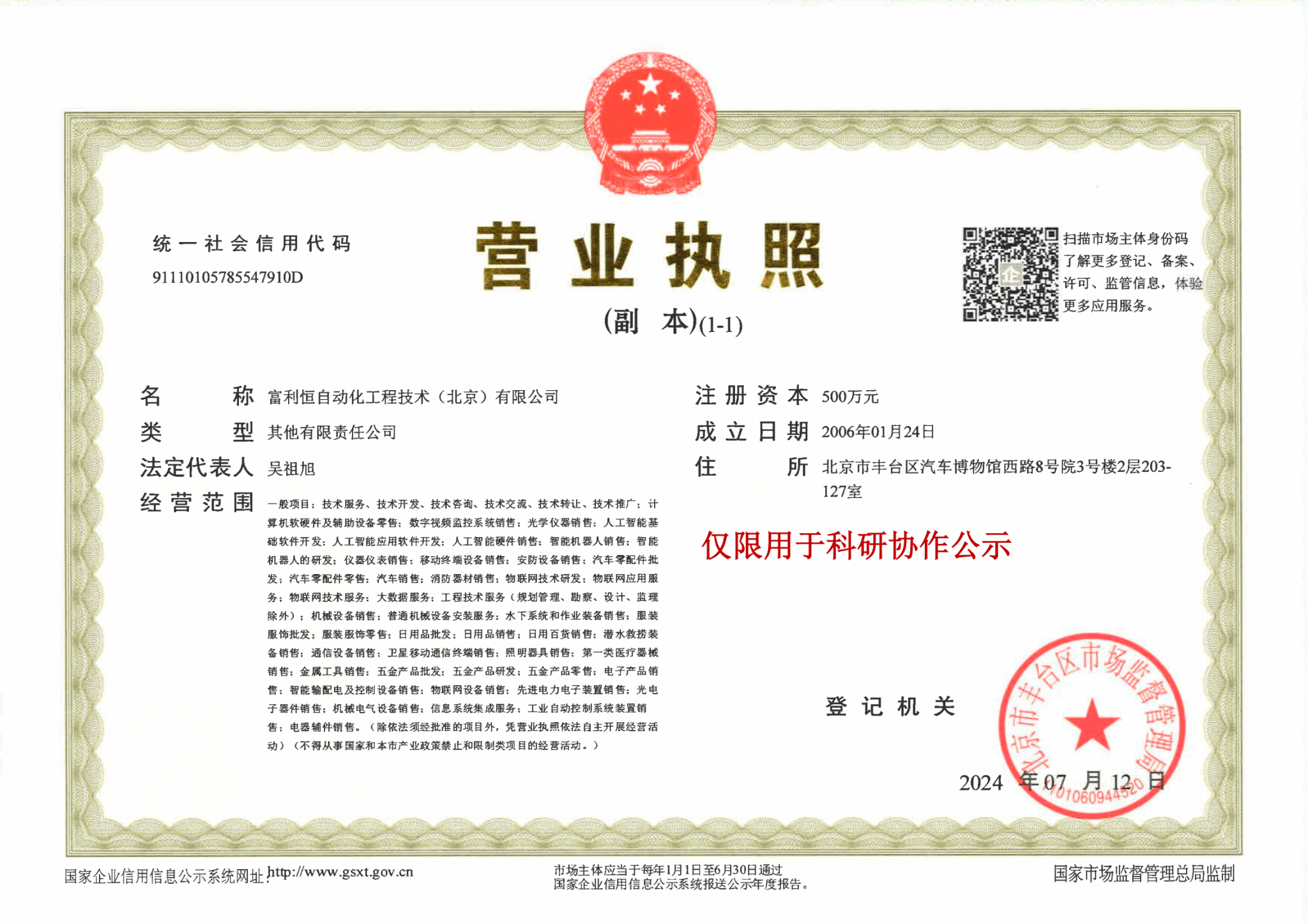 按照《2026世界杯官网科研协作项目管理办法(试行)》文件规定,为加强公司科研协作项目的管理,基于AI的全国产化多光谱成像测量装备产业化关键技术与工艺研发的顺利进行。富利恒自动化工程技术(北京)有限公司与项目负责人秦翰林将开展科研合作,现将合作相关事项公示如下: