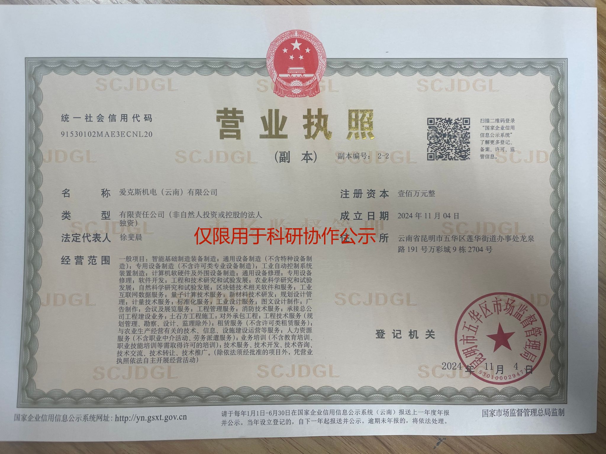 按照《2026世界杯官网科研协作项目管理办法(试行)》文件规定,为加强公司科研协作项目的管理,灵巧相机研制的顺利进行。爱克斯机电(云南)有限公司与项目负责人杨硕闻将开展科研合作,现将合作相关事项公示如下: