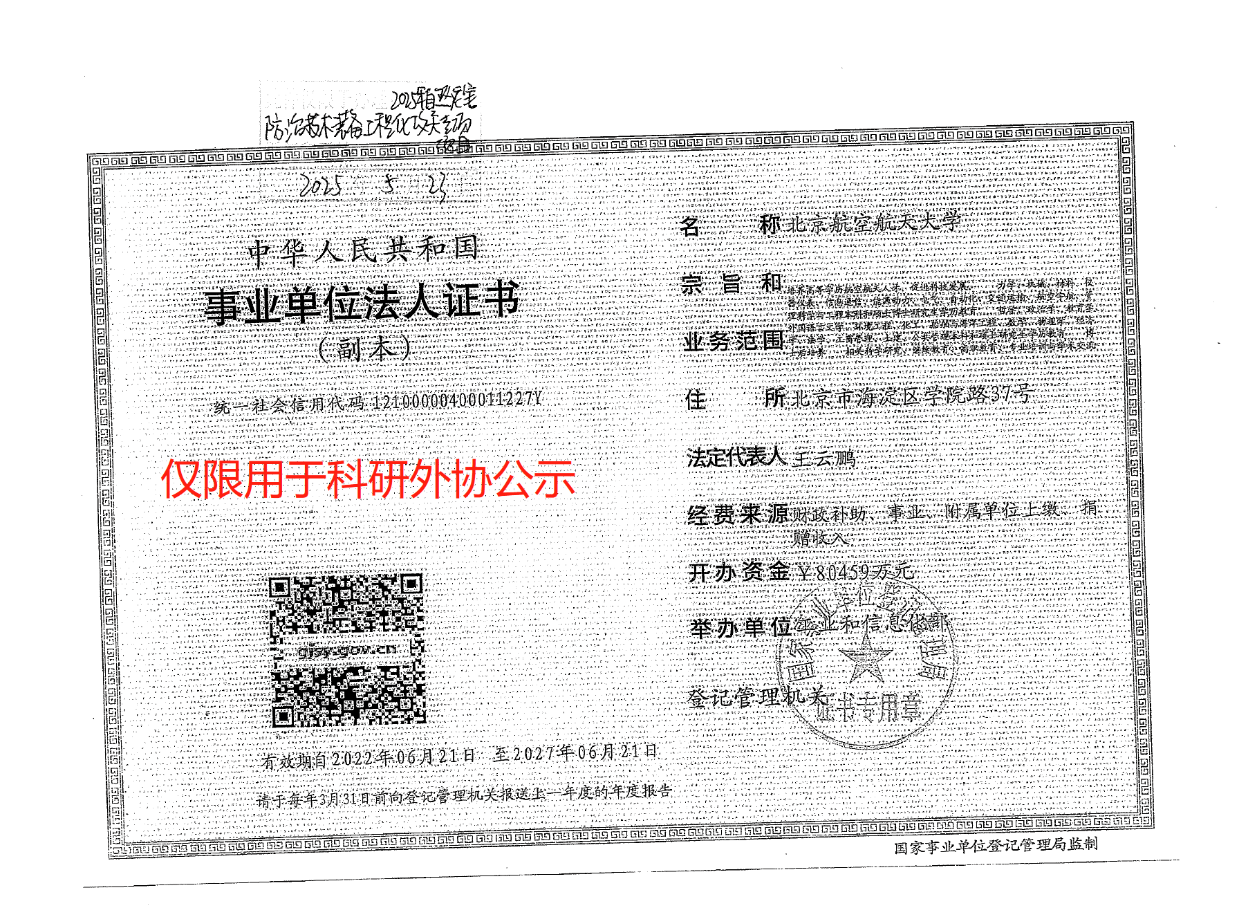 按照《2026世界杯官网科研协作项目管理办法(试行)》文件规定,为加强公司科研协作项目管理,确保我方承接的某雷达干扰技术研究开发研究项目顺利进行。公司项目负责人郭亮将与北京航空航天大学开展科研合作,现将合作相关事项公示如下: