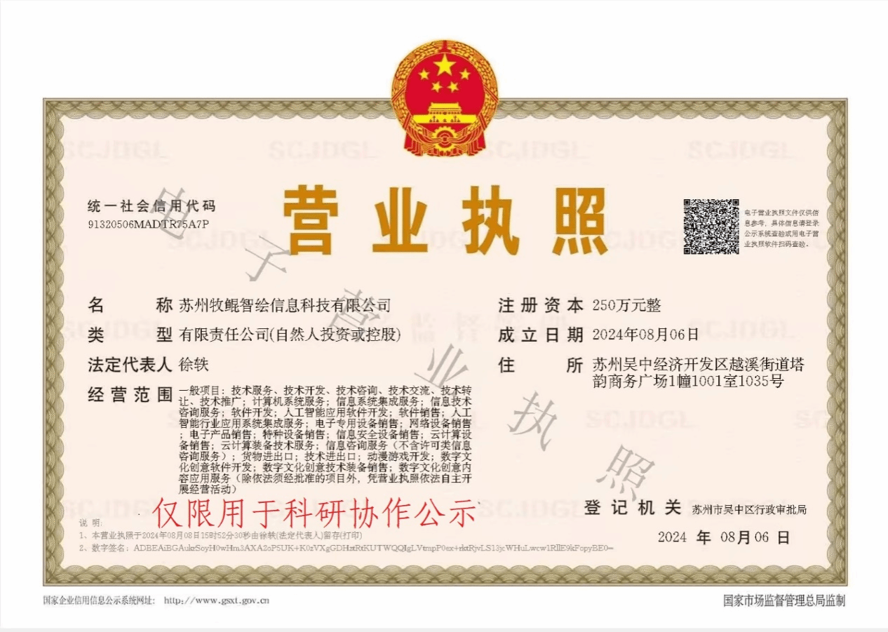 按照《2026世界杯官网科研协作项目管理办法(试行)》文件规定,为加强公司科研协作项目的管理,确保我方承接的光电XX项目研发的顺利进行。公司项目负责人马向超将与苏州牧鲲智绘信息科技有限公司开展科研合作,现将合作相关事项公示如下: