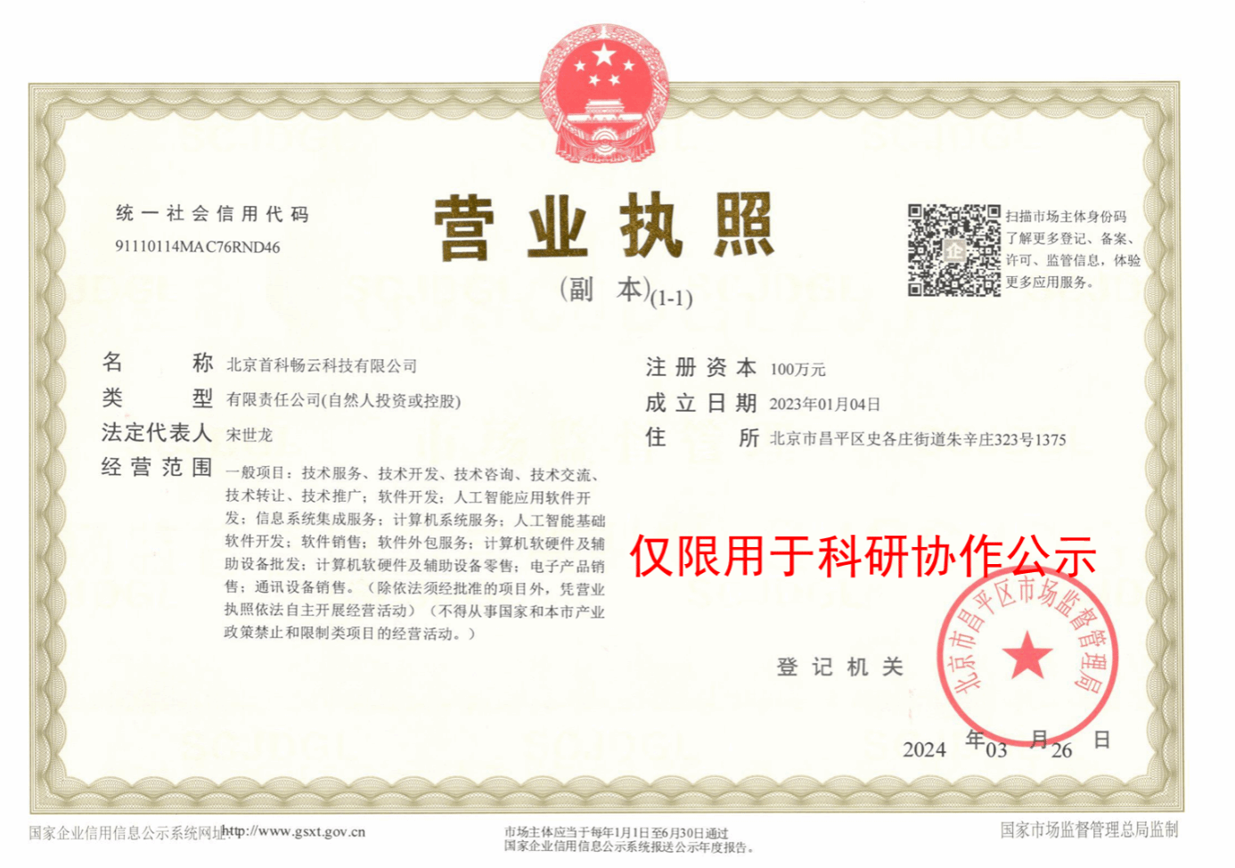 按照《2026世界杯官网科研协作项目管理办法(试行)》文件规定,为加强公司科研协作项目的管理,确保高温喷流火焰可见-红外宽波段光谱分析及仿真测试的顺利进行。北京首科畅云科技有限公司与项目负责人杨尚霖将开展科研合作,现将合作相关事项公示如下: