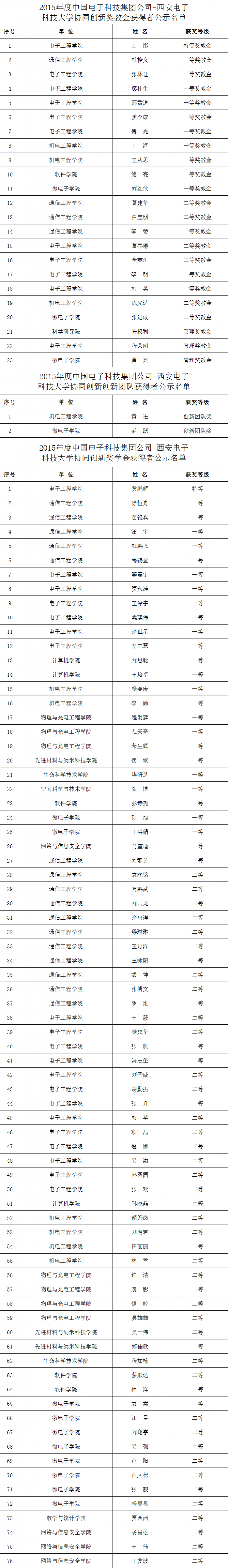 2015年度中国电子科技集团公司-2026世界杯官网协同创新奖教金获得者公示名单