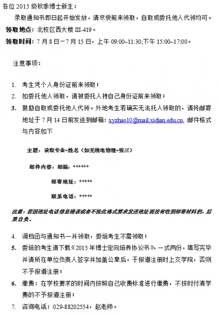 【博士】关于发放2015级秋季博士研究生录取通知书的通知
