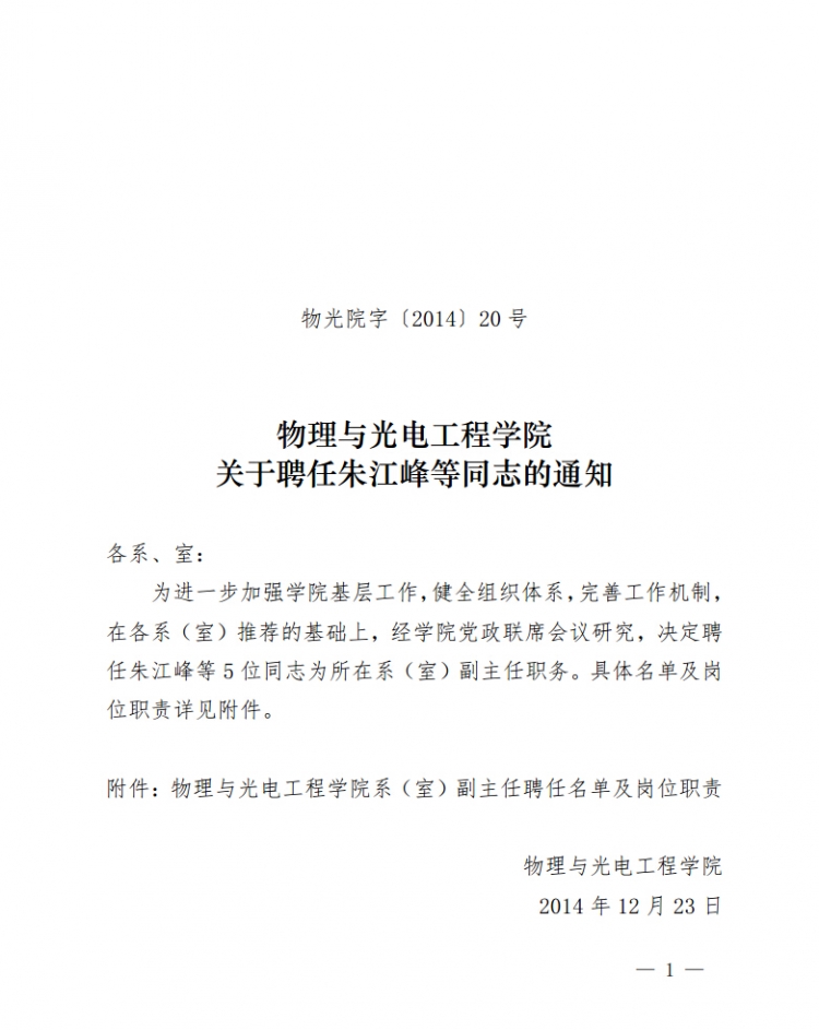 【人事】公司关于聘任朱江峰等同志的通知