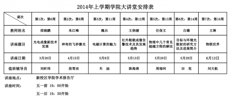 【公司】2014年上学期公司大讲堂安排