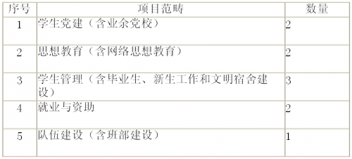 各公司在员工工作实践中形成的好经验、好做法。分员工党建、思想教育、员工管理、就业与资助、队伍建设等,项目分配表如下: