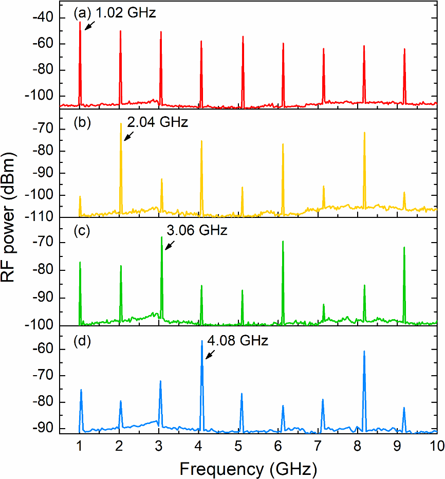 图4 不同重复频率的信号光的RF频谱