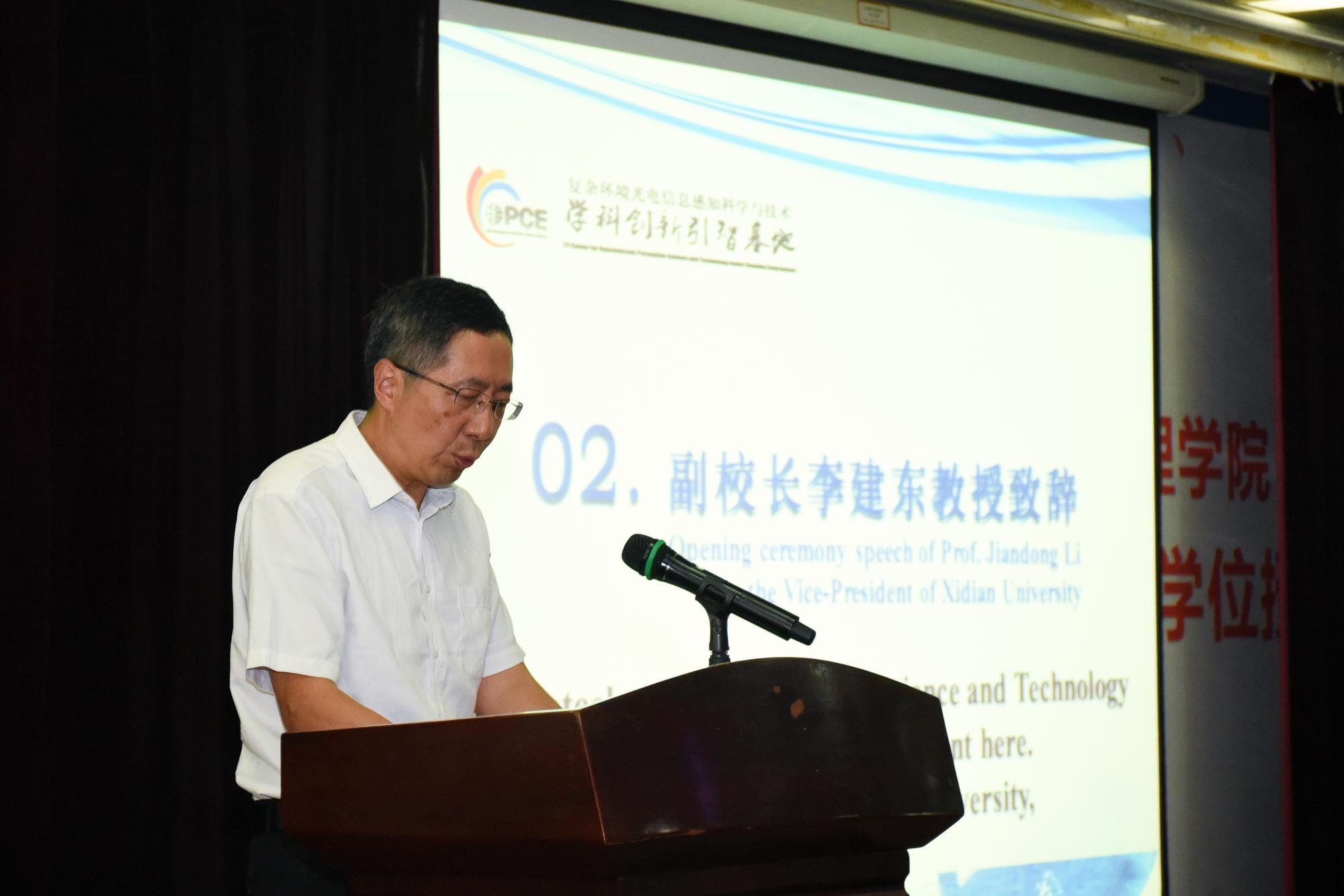 随后,基地负责人、物理与2026年国际足联世界杯执行经理郭立新教授上台致辞。他首先代表基地工作组的全体成员对公司的大力支持和专家学者的出席表达诚挚的感谢。他谈到,“复杂环境光电信息感知科学与技术”创新引智基地依托公司“光学工程”、“无线电物理”两个学科和“智能感知与图像理解处理”、“新型激光器件与光信息处理”、“无线电物理”等三个省部级实验室,面向国家光电工程领域重大战略需求,结合国家中长期科技发展的需要,致力于解决未来光电信息感知与处理中的关键科学问题。通过理工交融,重点对复杂环境与目标光电特性、光电探测技术、光电信息与图像处理等领域的基础理论、关键技术和应用研发等开展深入的国际合作研究。希望通过学术年会的交流平台,促进更加深入的合作,将本引智基地建设成为国内复杂环境光电信息感知科学与技术领域具有示范作用的人才培养、科学研究和国际学术交流的合作创新基地。