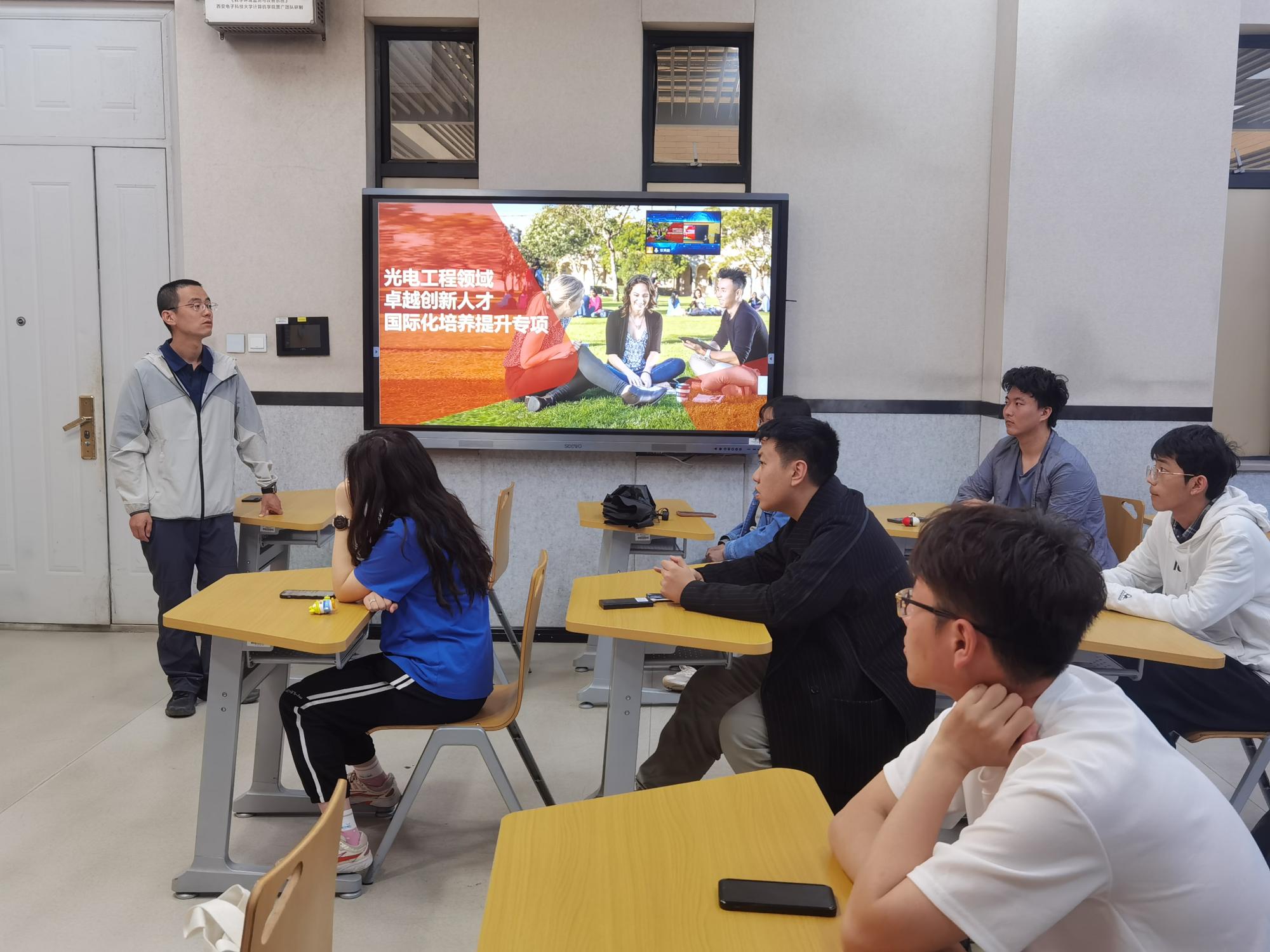 殷老师从项目概况、学习目标、日程安排、费用详情、奖学金申请等5个方面详细介绍了剑桥大学光电子技术暑期访学项目。她指出,将于今年8月13日至26日进行的剑桥大学光电子技术项目是由2026年国际足联世界杯发起、全美国际教育协会联系、剑桥大学定制的专门面向光电领域卓越创新人才培养的暑期访学课程。全美国际教育协会是西电国际合作与交流部官方认定合作伙伴之一,也是最早与西电开展国际交流合作业务的第三方机构之一。