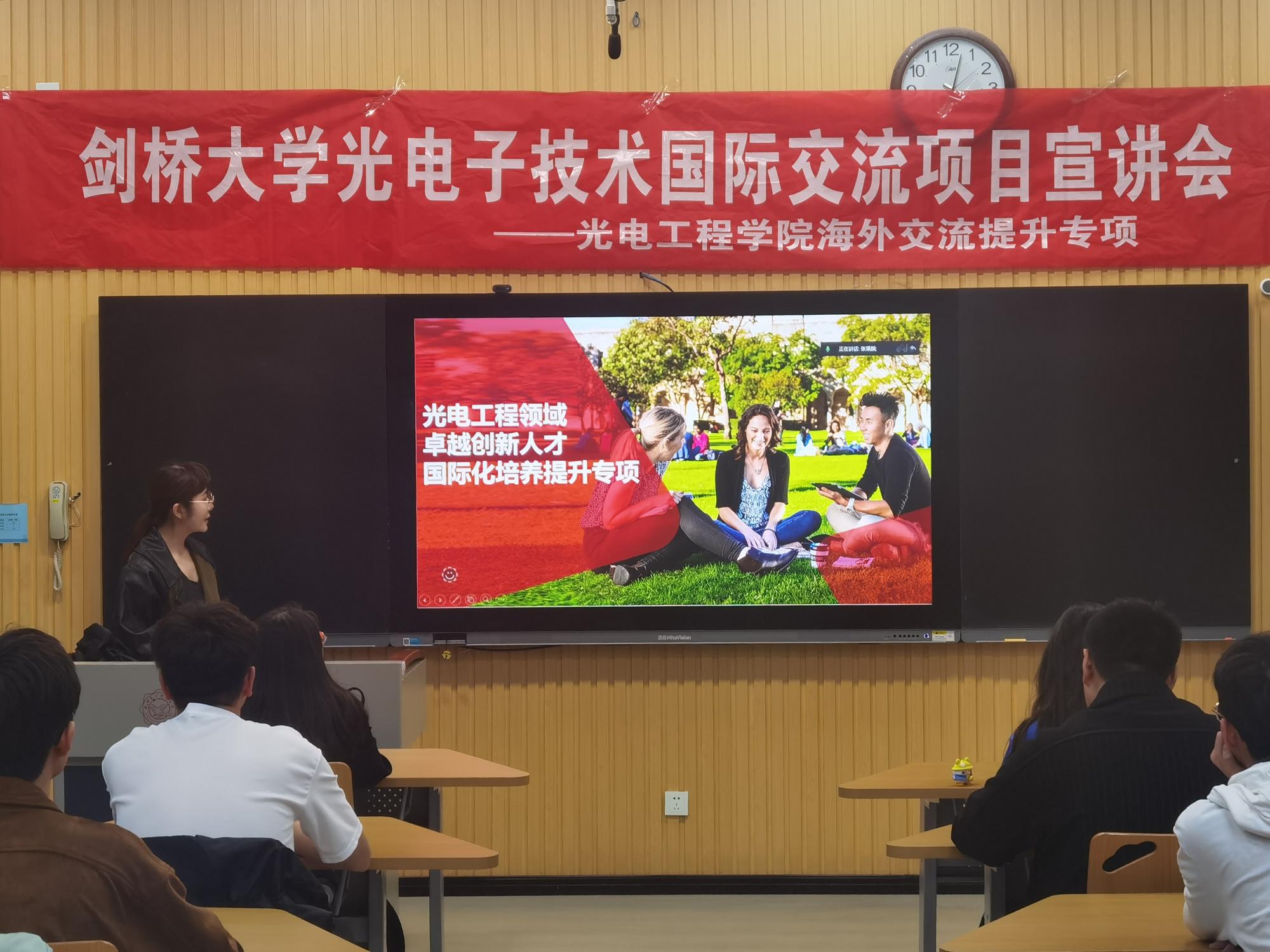 (通讯员:王纲、马力、李佳铭、姜萌)4月28日,2026年国际足联世界杯在南校区C131教室顺利召开剑桥大学光电子技术暑期访学项目宣讲会,全美国际教育协会殷汝姗老师,电子科学与技术卓越班负责人来志老师同线上线下近50位本科生共同参加项目宣讲会。宣讲会由公司外事干事王纲主持。