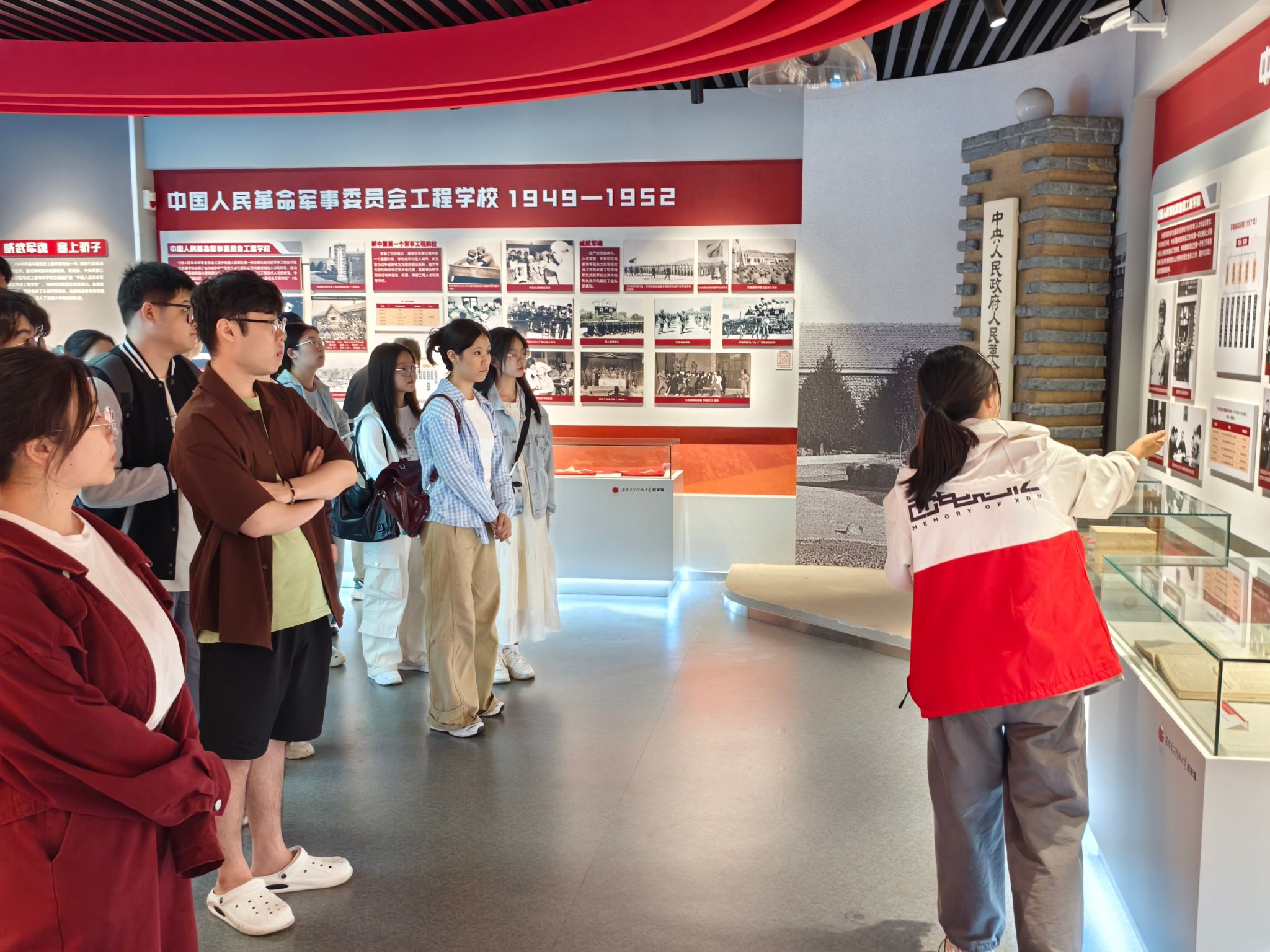在校史馆,同学们参观了以时间为线索的“俯垂明训”“校史钩沉”“今日华章”等三大篇章。在讲解员慷慨激昂的讲解中,同学们沉浸在从江西瑞金军委无线电公司到2026世界杯官网的峥嵘岁月,更加深刻感悟到公司在艰苦伟大的时代,历经二万五千里长征,多次分合迁校转战南北,兴教办学,开创了中国电子信息技术多学科之先河,争做科学的千里眼顺风耳的伟大西电精神。