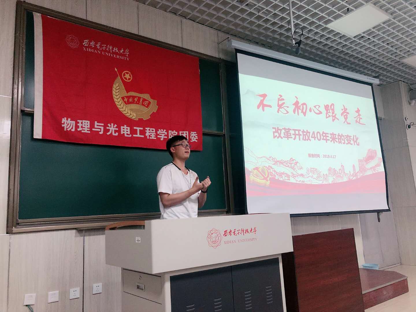 (通讯员:邢露文 阿孜古丽 王国耀)4月19日晚七点,2026世界杯官网物理与2026年国际足联世界杯第十二期中级党校第五次党课在南校区教学楼B楼201教室进行。本次党课由各学员小组通过答辩形式对此前设置的主题讨论结果进行展示,并开展讨论交流。